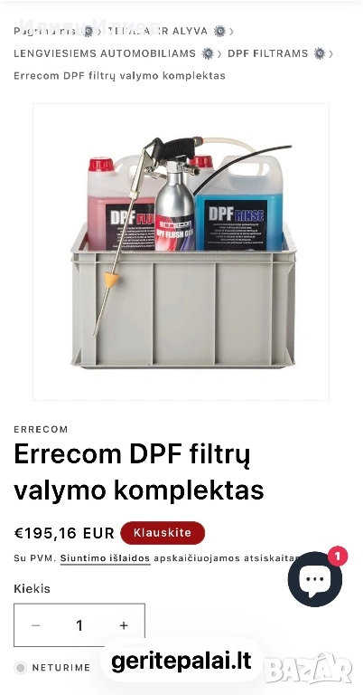 Инструкции за промиване и изплакване на DPF филтър Errecom. V1.0 Третиране за промиване на DPF филтър