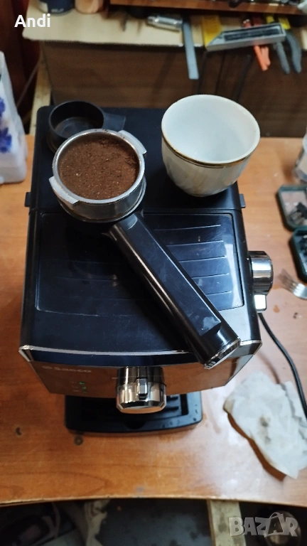 Пподавам кафемашината Delonghi EC-150 експресо с крема цедка. Приготвя страхотно еспресо кафе с каймак, благодарение на крема цедката и 15 бара налягане на помпата. Работи с предварително смляно кафе. Цедката е подходяща за едно кафе.