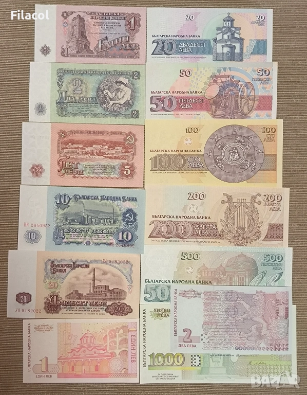 Стартов комплект за бонисти 13 броя български  банкноти от 1974 до 1999 година UNC, снимка 1 - Нумизматика и бонистика - 53250926 Стартов комплект за бонисти 13 броя български  банкноти от 1974 до 1999 година UNC, снимка 2 - Нумизматика и бонистика - 53250926 1/2