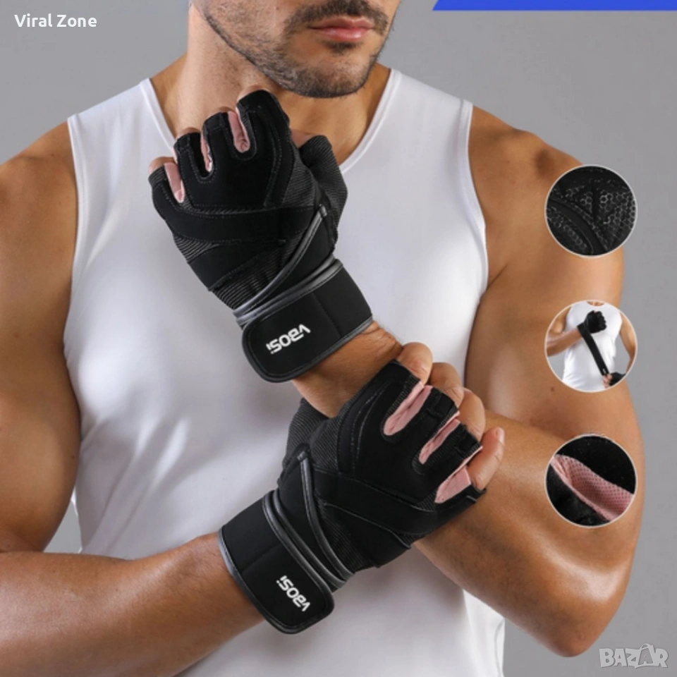 Ръкавици със стабилна опора на китката Vbosi NO:4016B Fitness Gloves - стабилен хват и защита на дланите