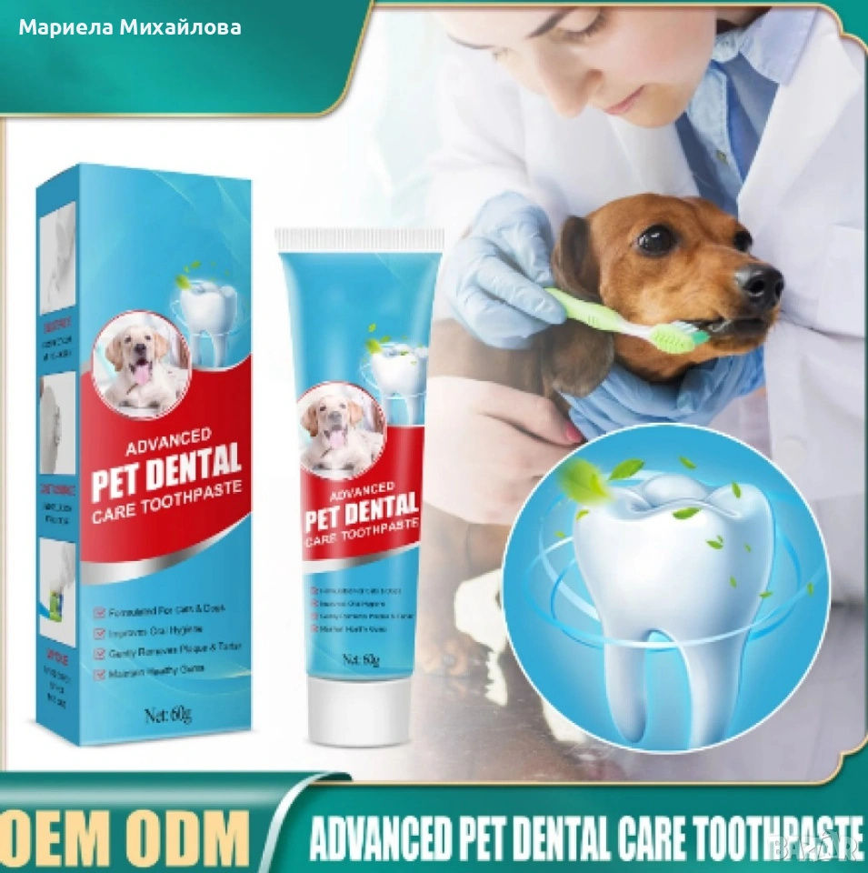 Нашата паста за зъби за кучета ще гарантира, че вашият домашен любимец ще се радва на почистването на зъбите. Паста за зъби за кучета с вкус на мента. пастата за зъби за кучета отговаря на най-високите стандарти за оралното здраве на вашия домашен любимец. Ежедневното използване на нашата четка за зъби и паста за зъби значително ще подобри оралното здраве на вашия домашен любимец.