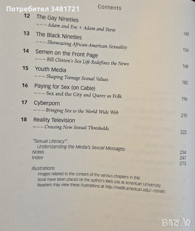 секс на Бил Клинтън и целувката на Мадона и Бритни в най-гледаните часове, сексът прониква в почти всеки аспект от обществения живот. Как се стигна до това? Тази книга търси отговори, представяща пътя от пуританско потискане до мания по променящите се сексуални нрави.