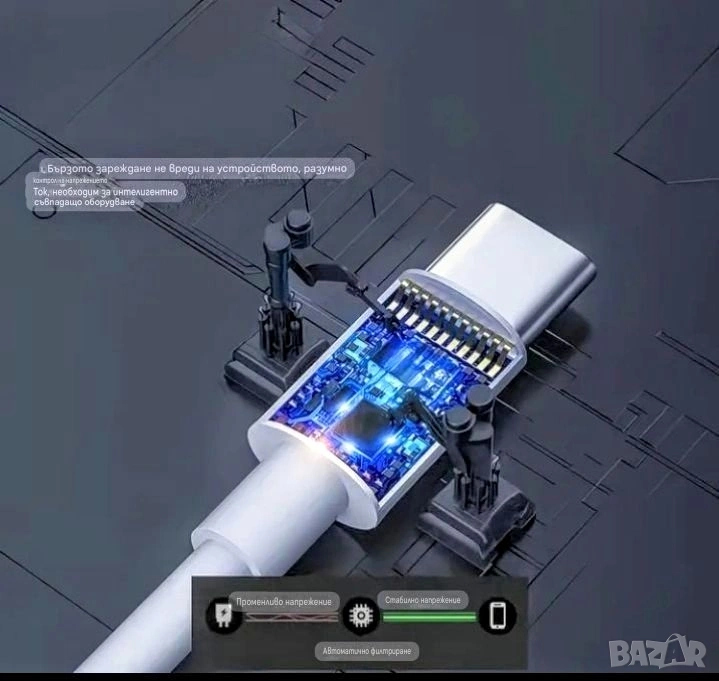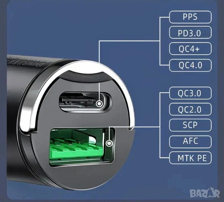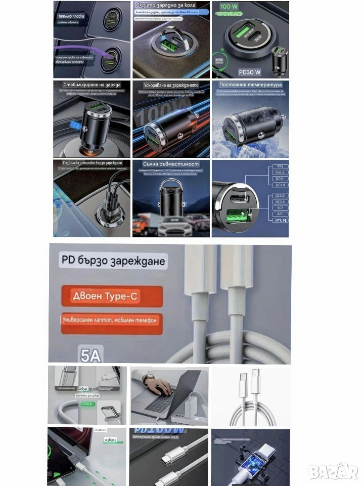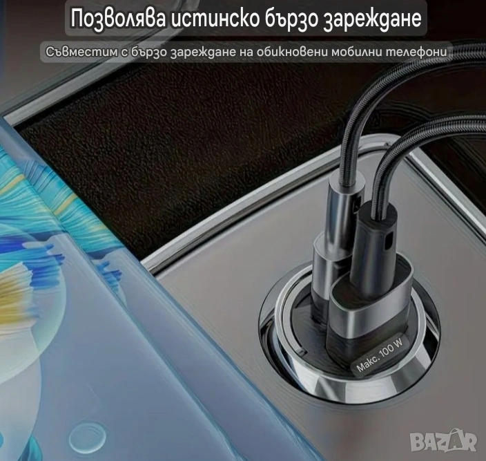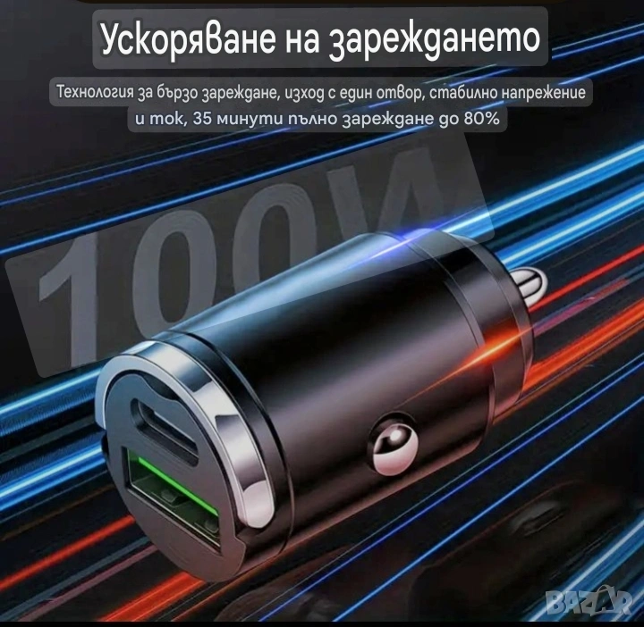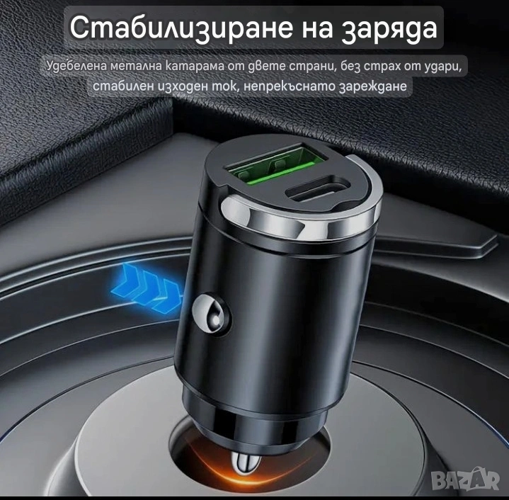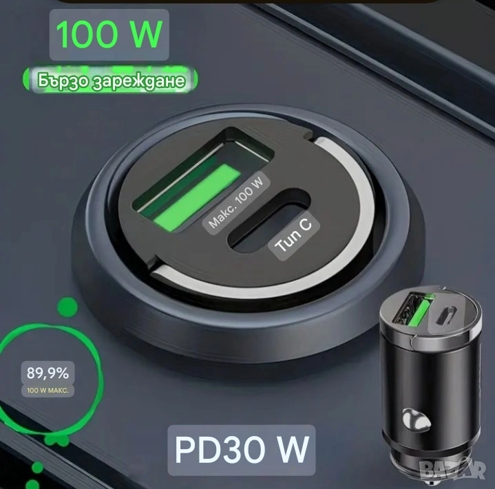 Бързо зарядно за автомобил от Метал+Кабел Tape C → Обява 53251183