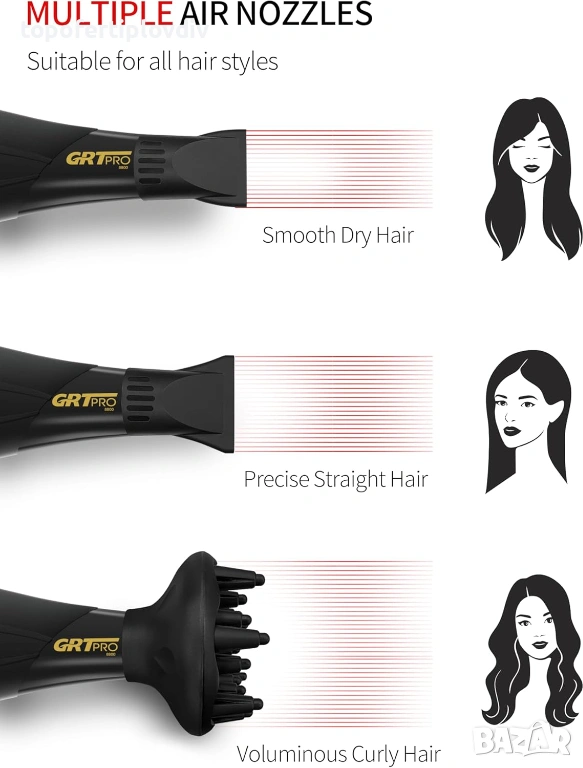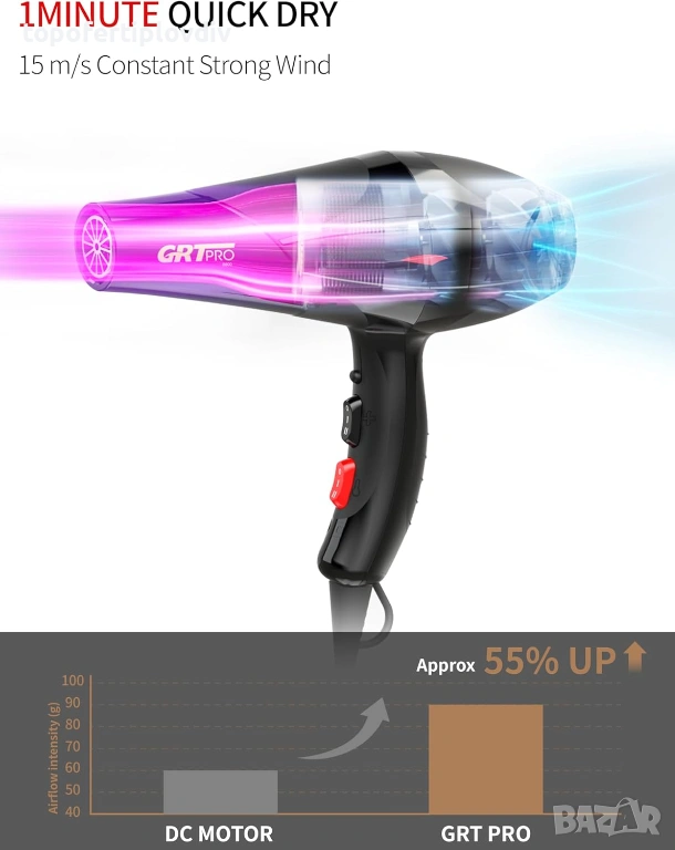 Сешоар GRT PRO Professional Hair Dryer 3500W,Гаранция