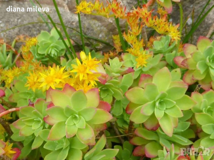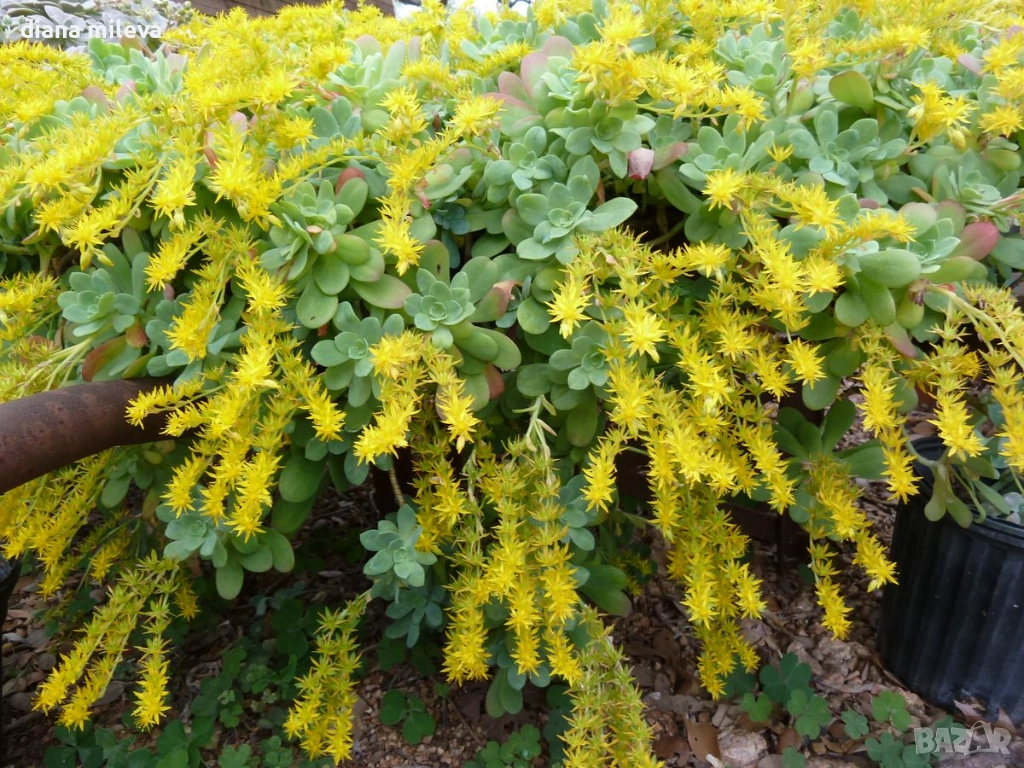Много лесен за отглеждане вечнозелен седум, който е сухоустойчив и обича супер слънце. Може да се засажда в градината, но е идеален и за висящи кошници, защото розетките му растат много бързо и имат каскаден ефект! Цъфти в жълто в края на зимата и началото на пролетта!