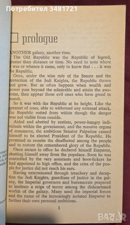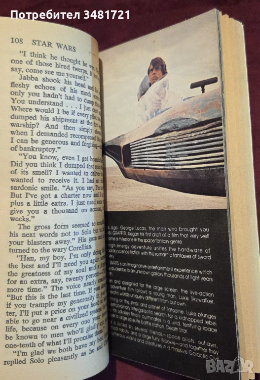 Фостър не само адаптира събитията от филма, но и разкрива предисторията на времето, мястото, физиката, планетите, видовете, езиците, историята и технологиите. Трябва да се отбележи, че Джордж Лукас не крие, че книгата всъщност е написана от Алън. Настоящето издание е седмият тираж на оригинала, издадено година по-късно(1977), затова в него присъстват цветни снимки на кадри от филмите. Алън започва своята история с: "Another galaxy, anaother time."