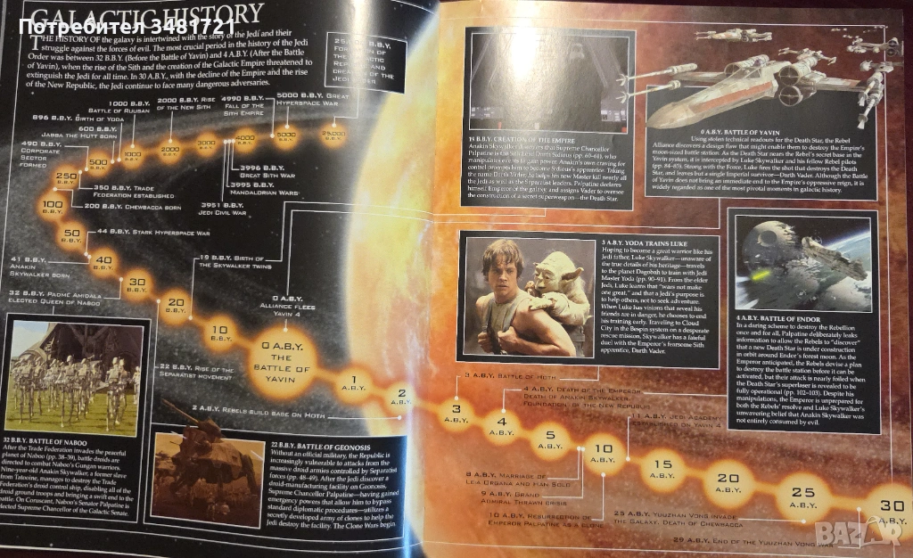 Историята на звездната сага, представена в текст, снимки и илюстрации - героите, събитията, истории от снимачната площадка, създаване на моделите, визуални ефекти и друга информация, предназначена за фенове на Star Wars.