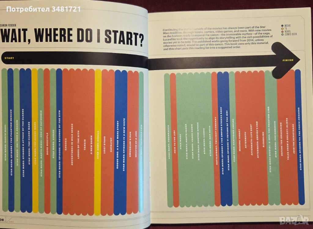 Повечето книги за известната филмова поредица се фокусират или на визуалното представяне на героите и събитията от нея, или текстово на историята, която Джордж Лукас разказва на големия екран. Тази книга не е като тях. Макар да е изключително богата на визуално съдържание, нейният фокус е друг. Предназначена за колекционери и най-върлите фенове на поредицата, тя е съчетание между статистически справочник, биографична, технологична и историческа справка.