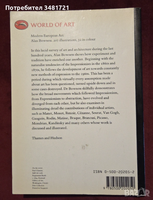 В текст и 207 илюстрации е представено съвременното европейско изкуство. От зората на модерната епоха и Мане, през Импресионизма, Символизма и Кубизма, абстрактното изкуство и Сюрреализма, до модерната европейска архитектура и скулптура. Включена е история на даденото течение, негови основни представители и техни произведения, философията, социалните и културни събития, които формират посоката на творбите и авторите им.