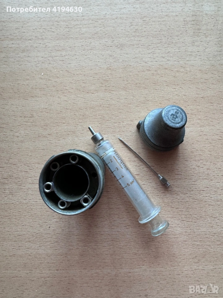 Винтидж стъклена спринцовка, игли и метален стерилизационен контейнер, снимка 1 - Други ценни предмети - 53251692 Винтидж стъклена спринцовка, игли и метален стерилизационен контейнер, снимка 2 - Други ценни предмети - 53251692 Винтидж стъклена спринцовка, игли и метален стерилизационен контейнер, снимка 3 - Други ценни предмети - 53251692 1/3