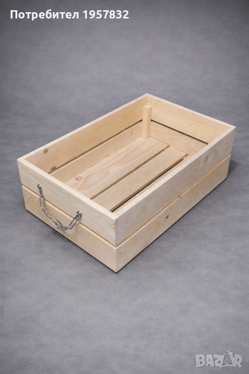 Декоративна дървена щайга с метална верига – среден размер 44×26,5×15 см → Обява 53251696