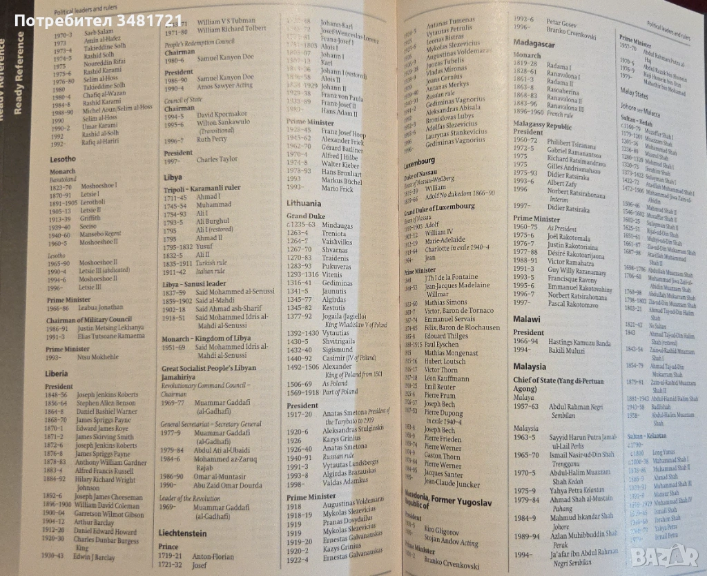 Подредени по азбучен ред, книгата представя кратка информация за над 26 хиляди личности в миналото и наши дни, чиито живот и дело са оставили следа в световната история. Наред с резюме е включено правилното произношение на имената, а в подробен показалец в края на книгата таблично са изредени политически лидери на държави и империи (от древна Асирия до съвременна Австрия), нобелови лауреати, родословни дървета на династии, светци, религиозни лидери, носители на Пулицър и т.н.