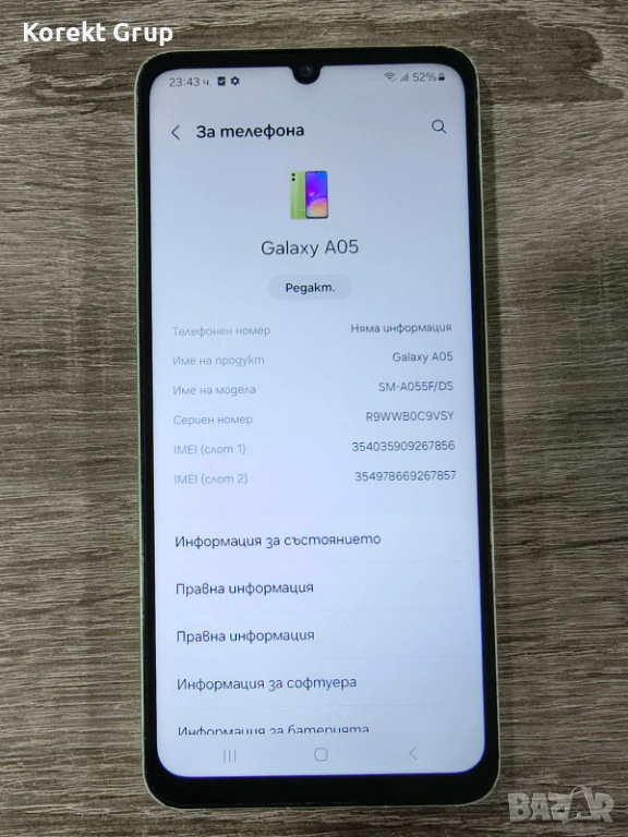 - Операционна система: Android 13, корпус: One UI Core 5.1