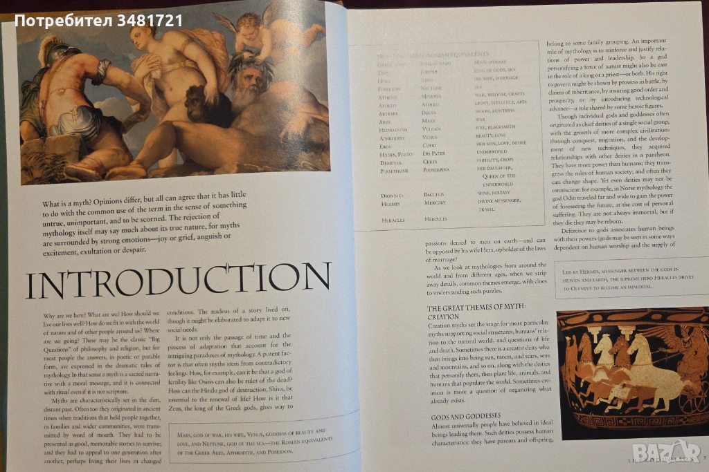 Богато илюстрирана книгата разглежда митологичните герои, истории и вярвания в различни епохи по целия свят, като нейната цел е не просто да запознае читателя с различните митове и легенди днес и в миналото, но да даде културен, исторически и социален контекст на това как и защо те са възникнали и добили популярност.