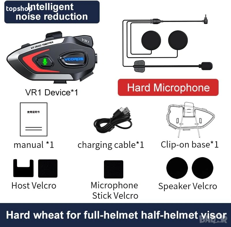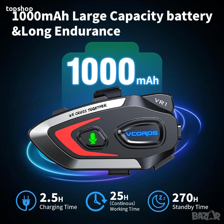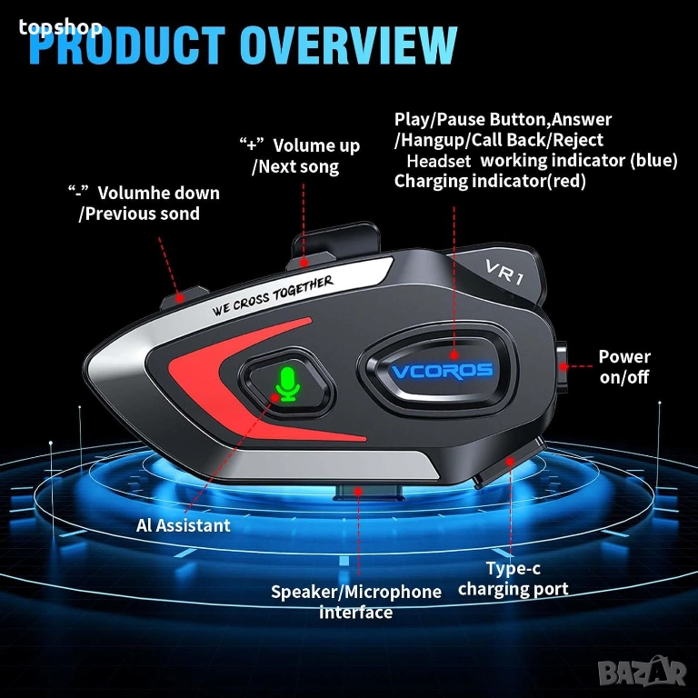 Продавам чисто нов Bluetooth комплект за мото каска VCOROS VR1. Идеален за хора, които искат да слушат музика, да следват навигация или да провеждат разговори по време на път, без да се налага да спират.