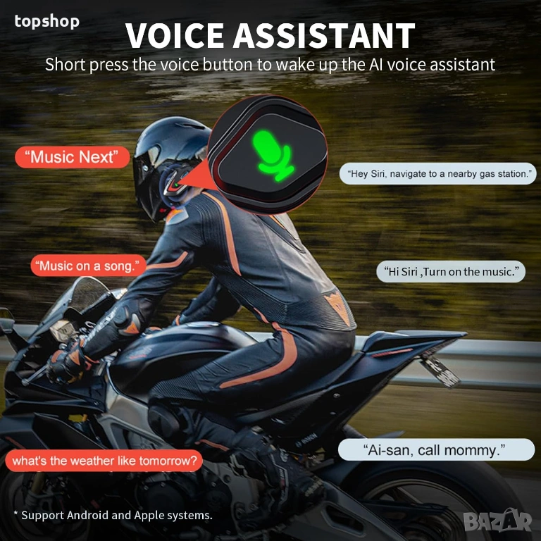 Гласов асистент (AI):Активирайте Siri или Google Assistant с един бутон – сменяйте песни или набирайте номера с глас, без да сваляте ръце от кормилото.