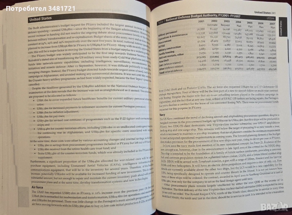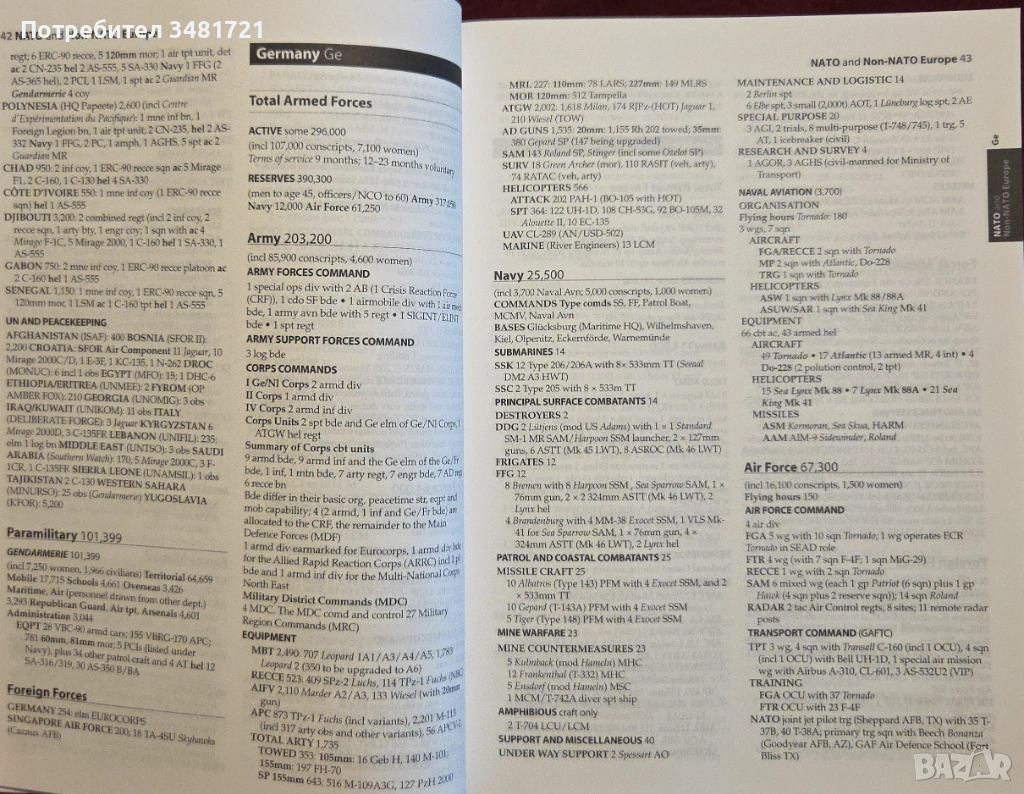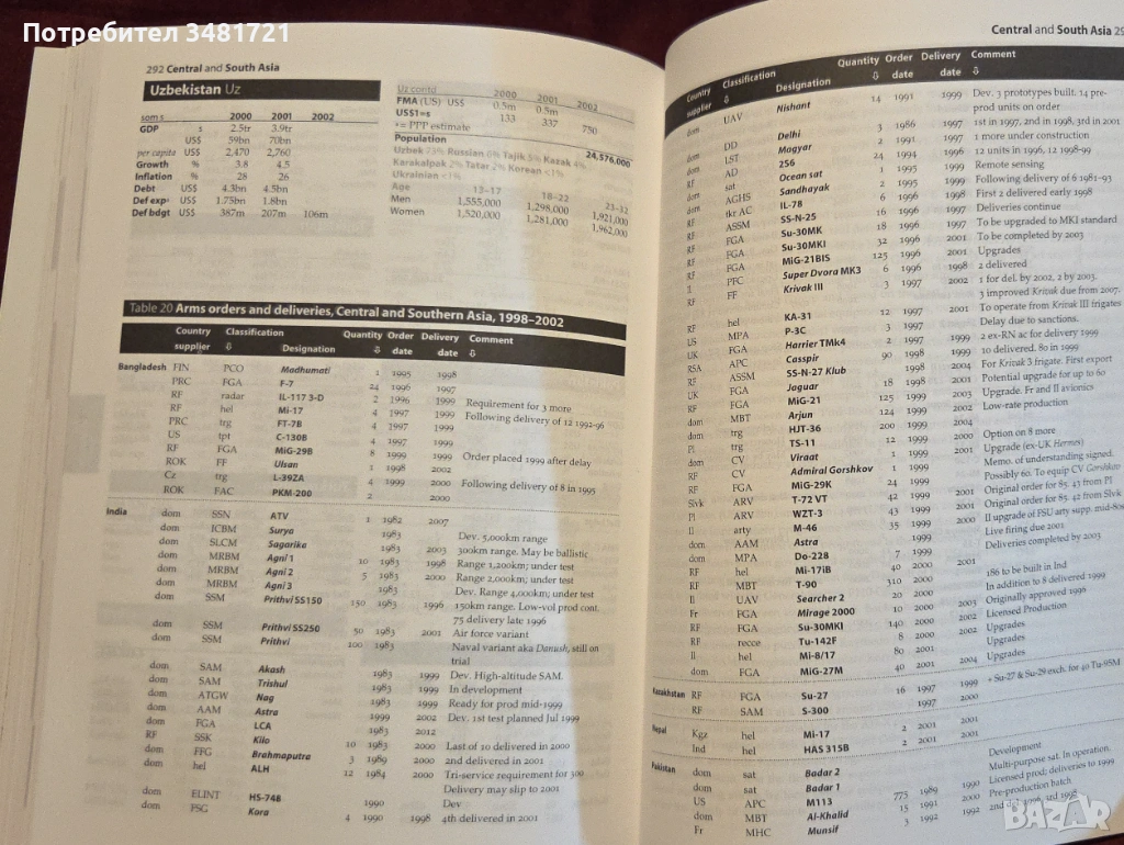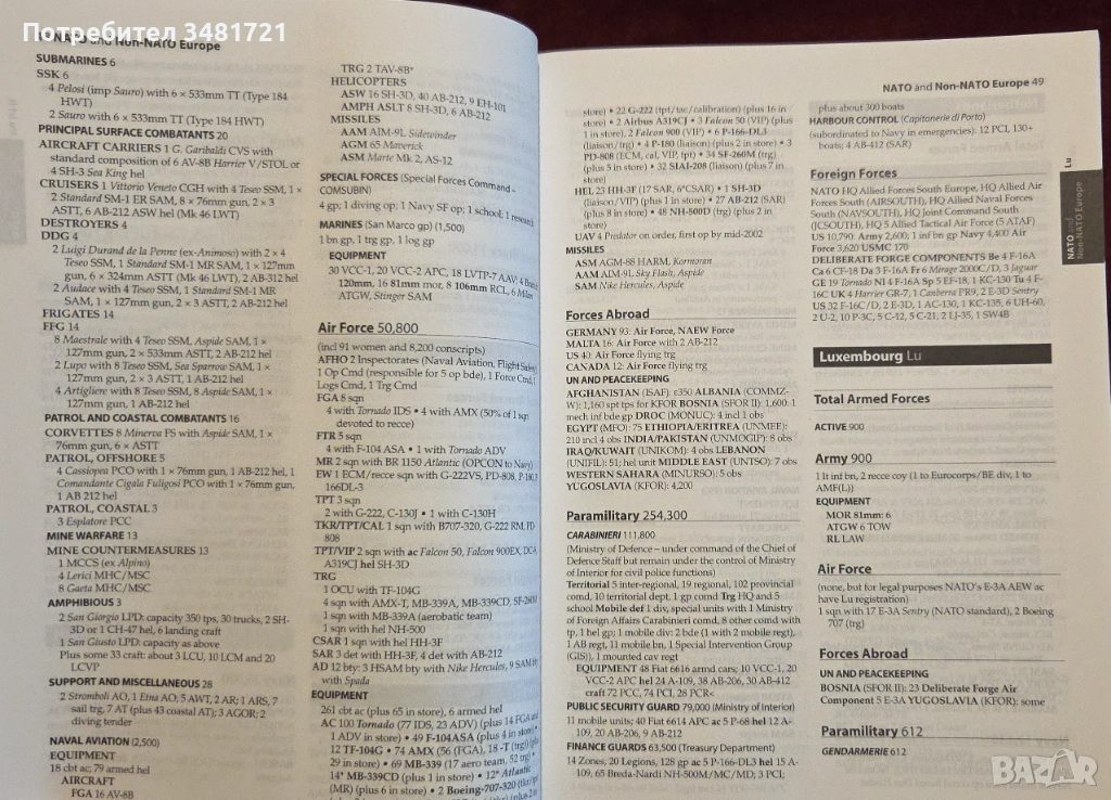 В края на изданието са включени и много таблици, свързани с основните производители и износители на оръжие, военен бюджет на страните в настоящата година и предишни, както и специфична информация, свързана с кодови названия от военната авиация. Важно е да се отбележи, че това издание излиза малко след атентатите в Ню Йорк през 2001ва година, съответно, то е и ценен източник на информация за състоянието на военния потенциал по света в зората на започнатата току що от САЩ глобална война срещу тероризма.