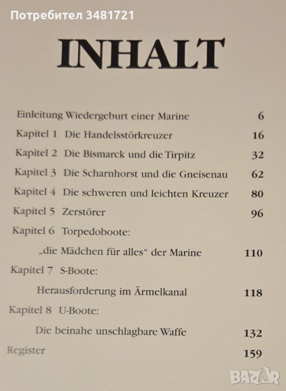 В текст, снимки, илюстрации и таблици са представени основните модели от военноморския флот на Германия през Втората световна война - тяхната история, технически параметри, участие във военни действия и друга любопитна информация.