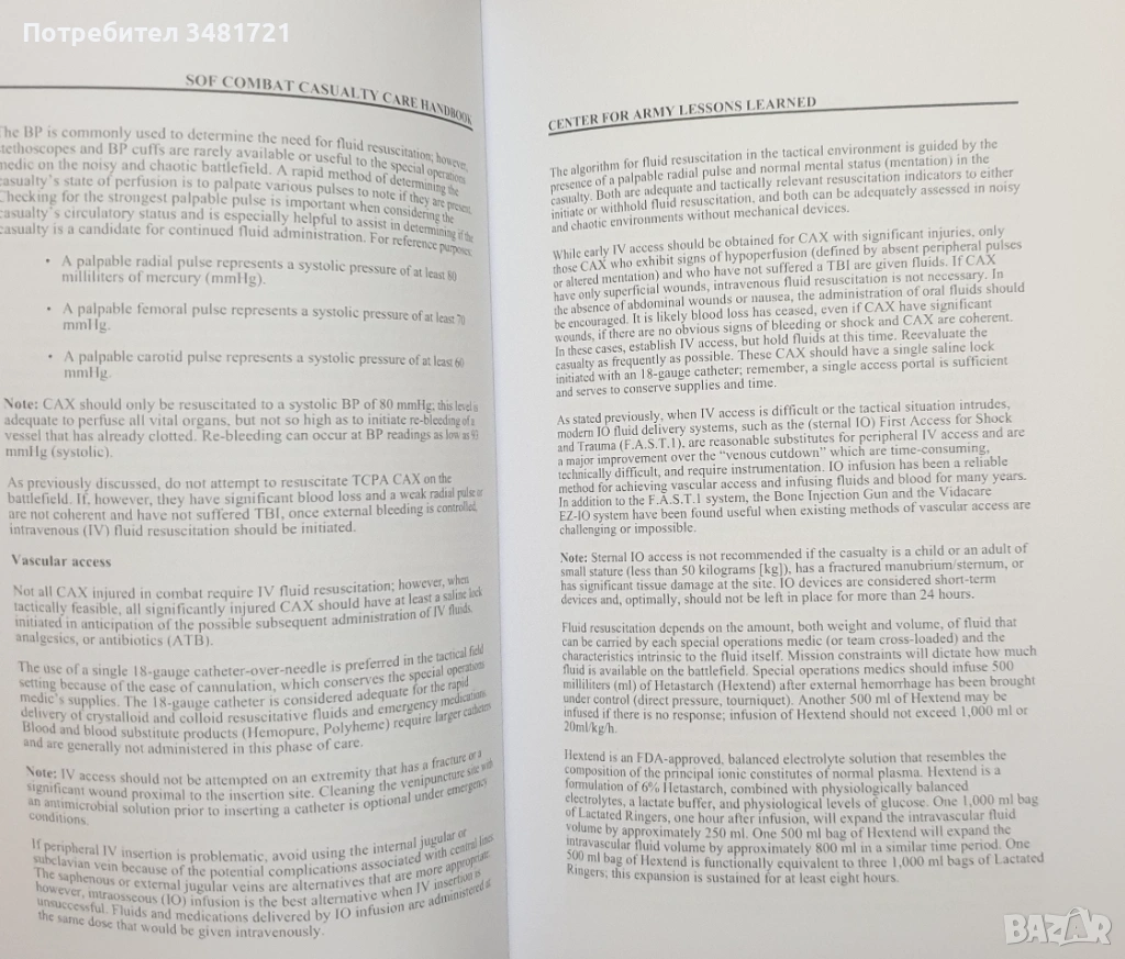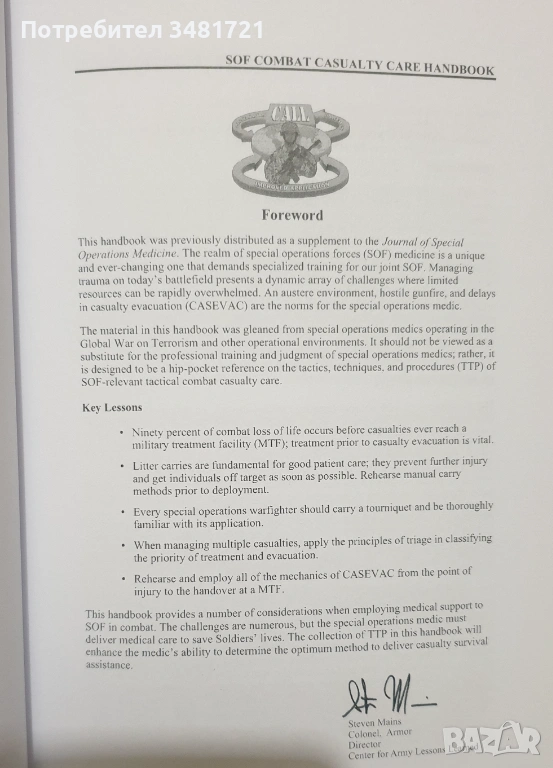 Наръчник на спец частите - грижа за ранените по време на битка / Combat Casualty Care Handbook