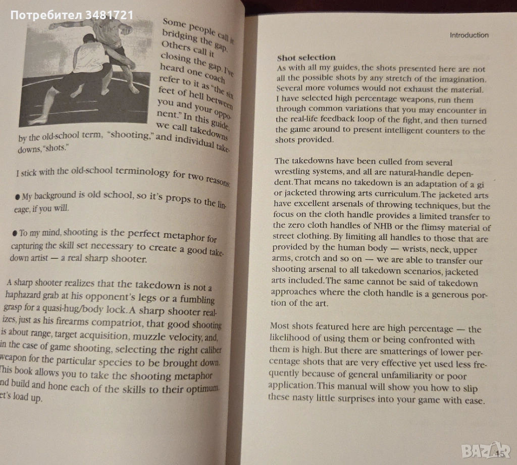 Ръководството за тренировки на Марк Хатмейкър съдържа всичко, което бойците трябва да знаят за изкуството на поваляне на противник или „стрелбата“, както и как да се противодейства на тактиките за поваляне, използвани от противник. Представени са двете страни в двубой с офанзивни и защитни стойки, работа с краката, настройки и техники на атака, всичко това - в текст и 850 снимки. Представени са няколко варианта на най-често използваните удари и атаки - атаки и с двата крака, поваляне с един крак, единични удари с издърпване и ниски единични удари, както и контраатаки за всяка от тях. За по-добро илюстриране на процесите при атака и защита, снимки дават стъпка по стъпка всяко движение, ъгъл на атака и защита, както и упражнения за подобряване на физическата форма, скорост за реакция и фокусиране на сила при атака и защита.