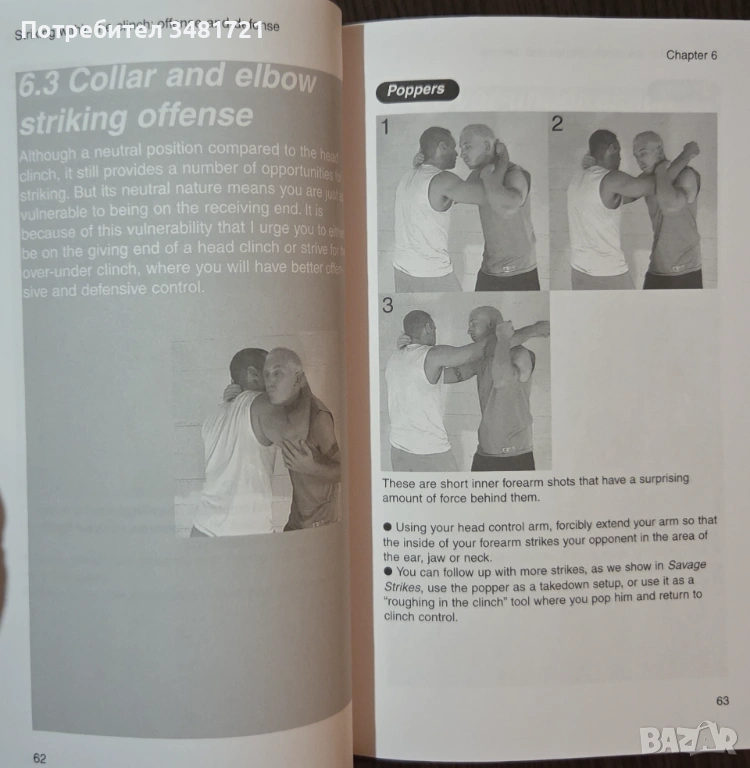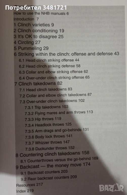 Подробен, илюстриран наръчник с фокус една единствена бойна позиция. В клинча се срещат безкомпромисните бойни техники на удари и граплинг, поставяйки нови предизвикателства и изисквайки нови стратегии. Включените подробни обяснения на всеки аспект от позиционирането в клинча помогат за индивидуална подготовка и тренировки за собствени тейкдауни в клинча и победа над тези, които го използват срещу тях на ринга. Уникалните инструменти за удари, стратегиите за защита и тейкдауните, които клинчът изисква, са обяснени както за нападение, така и за защита, като се преминава плавно между всеки боен елемент, за да се увеличи максимално предимството. Ситуацията в клинч е неизбежна в битките тип NHB и този справочник дава на бойците ценен помощник за това как да обърнат клинча в своя полза.