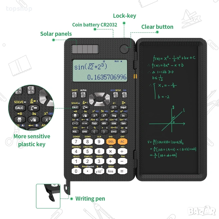 Продавам иновативен научен калкулатор NEWYES 991ES Plus, комбиниран с 6.5-инчов таблет за бележки. Идеален за ученици, студенти и инженери. Вече няма нужда от камара листи за чернова – решавате и записвате директно върху калкулатора!