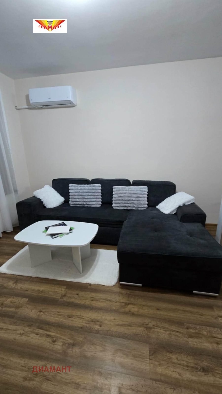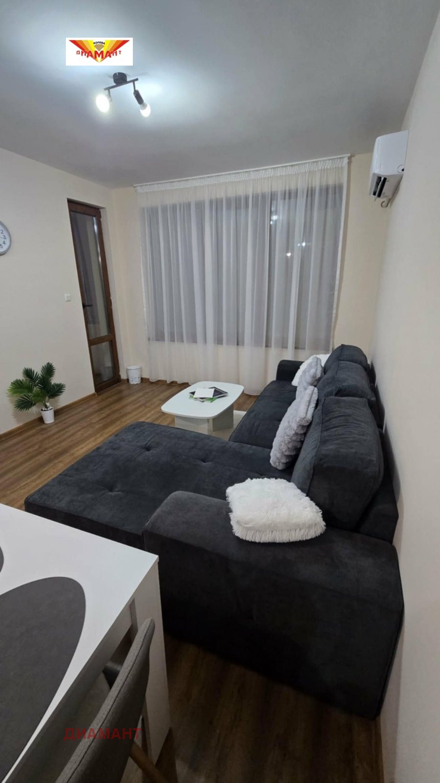 Напълно, луксозно обзаведен апартамент от две стаи с бокс в нова кооперация. Първи наемател!