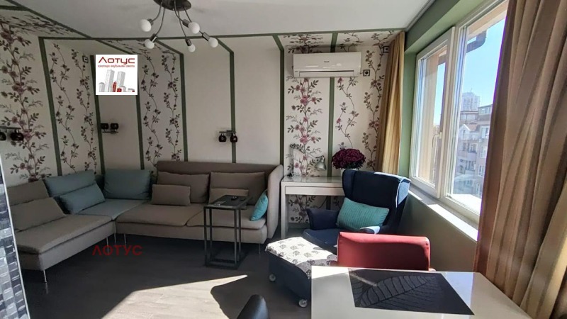 Агенция Лотус предлага за продавба южен нов двустаен апартамент до парка в к-с Изгрев. Сградата е с добре поддържани общи части и асансьор. Жилището е без скосове, с нормална височина, с доълнителна вътрешна изолация на целия апартамент. Състои се от дневна с светъл кухненски бокс, спалня с остъклена тераса, коридор, баня с wc и просторен дрешник. Апартаментът е завършен до ключ и напълно обзаведен и оборудван с бяла и черна техника. В двете стаи има климатици. Има прилежащо избено помещение. Апартаментът е освободен. В района достатъчно места за свободно паркиране. Ключ в офиса.