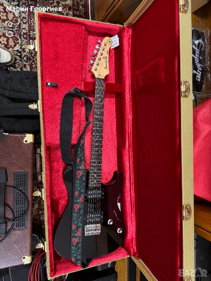 Китарата е в завидно за годините си състояние. Функционално е 10/10. Визуално 9/10, понеже има леко ожулено тялото. В момента със струни 11-52. Мисля, че са Dunlop, не са нови, хубаво ще е да се сменят. Върви с твърдия кейс от снимката.