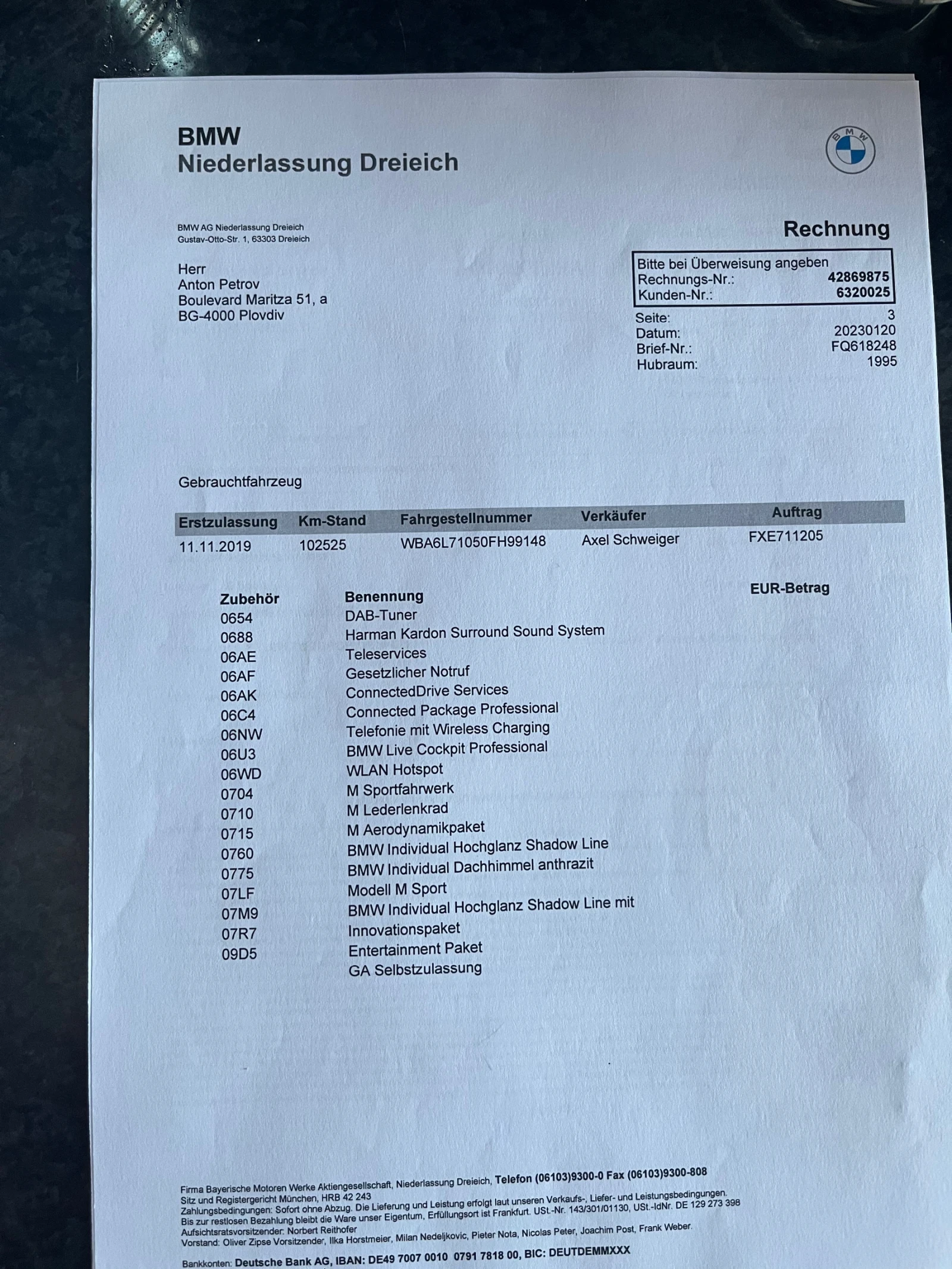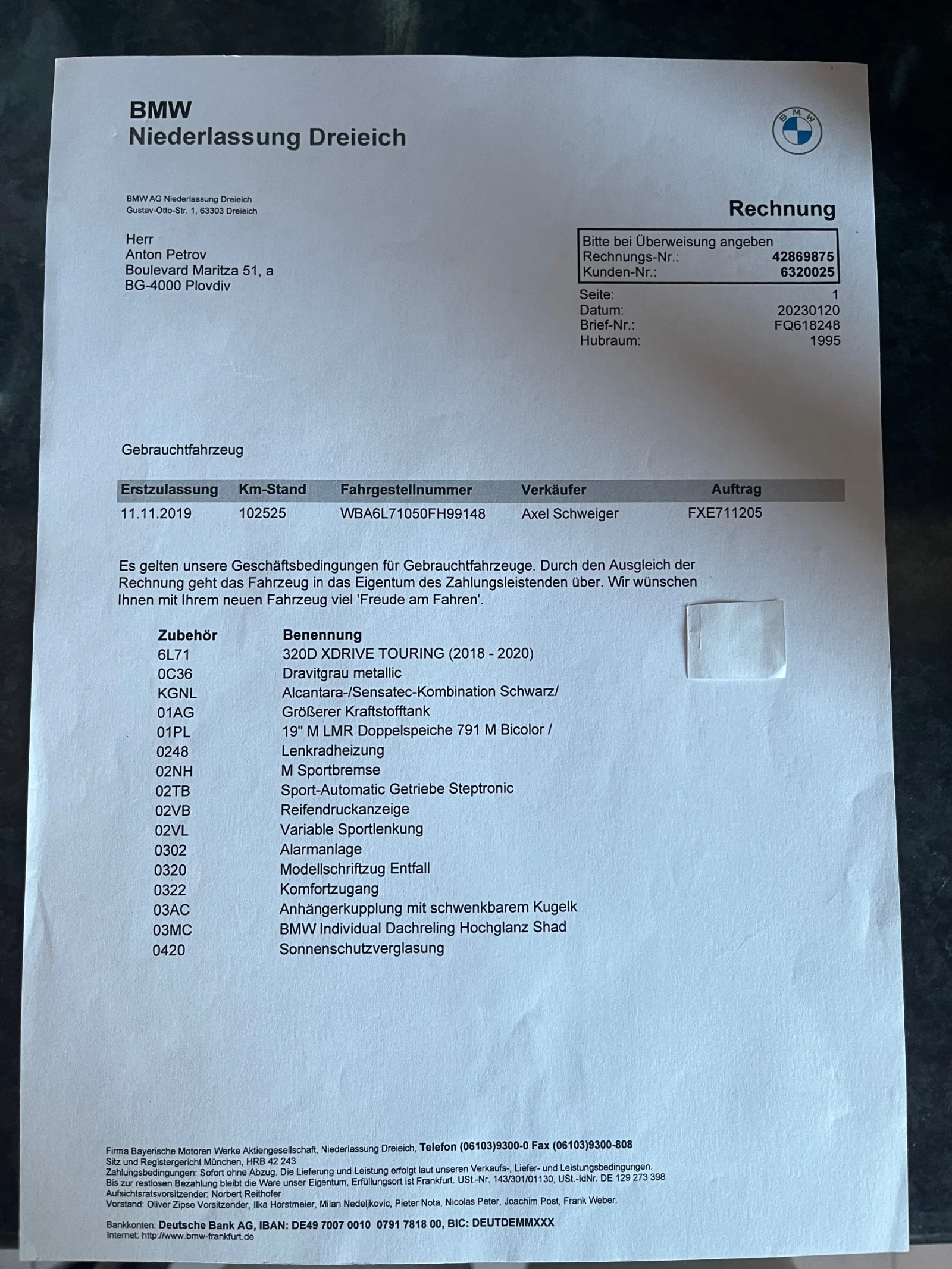 Автомобилът е закупен от Германия януари 2023 На 110200 км е обслужен по гаранция в БМВ 24300 км изминати само извънградско. Гаражен автомобил. Обслужена на 122889км