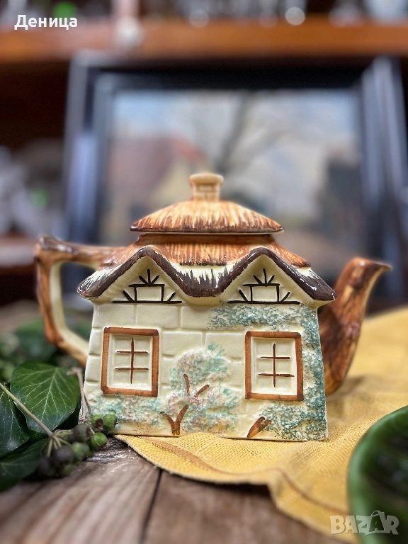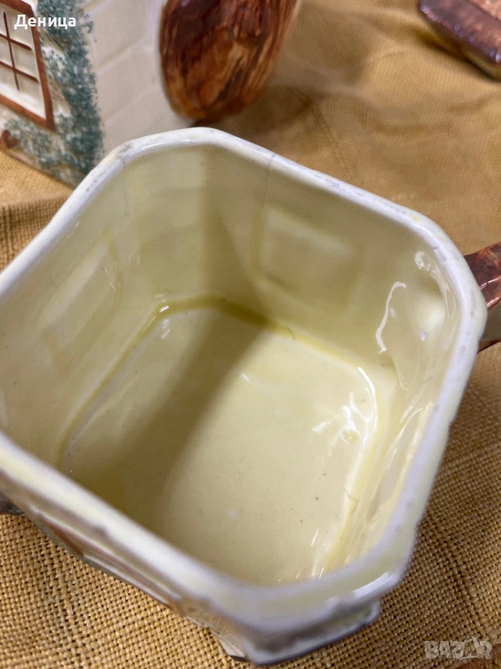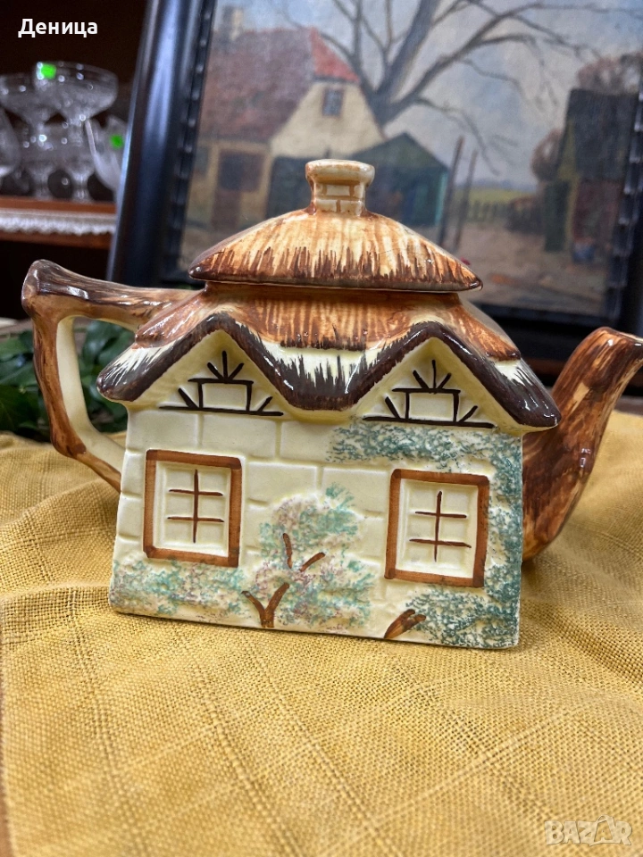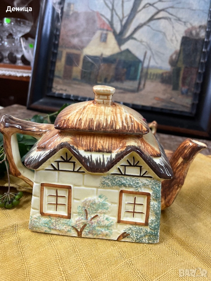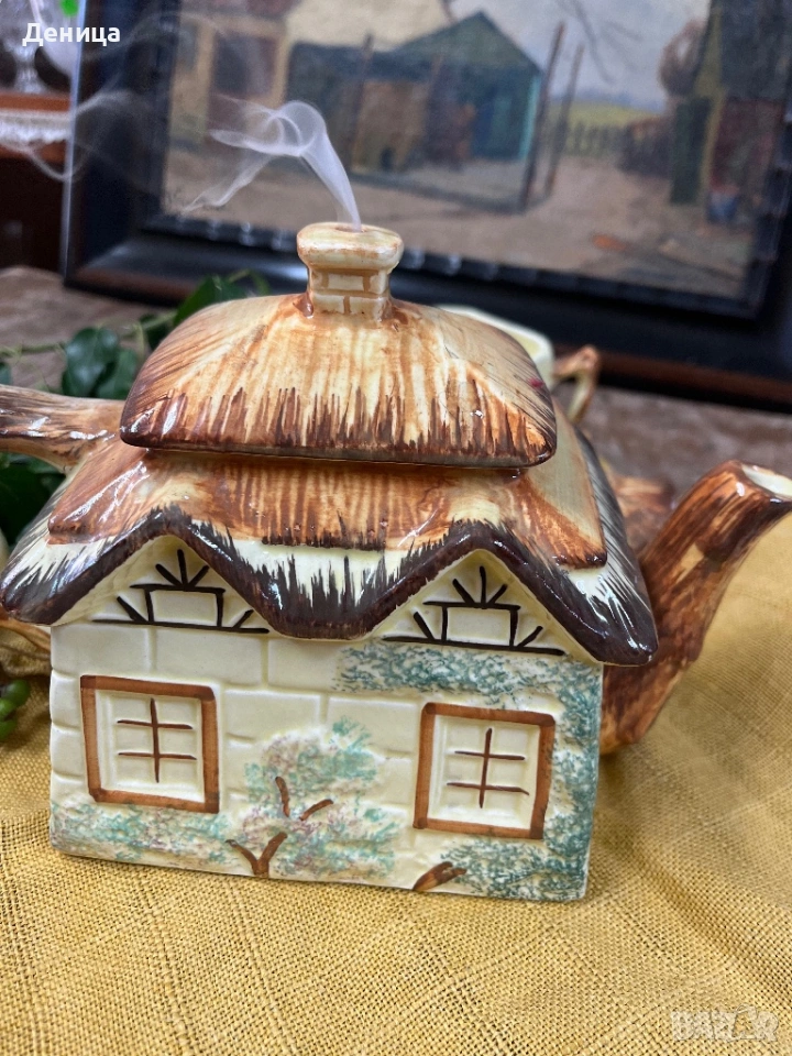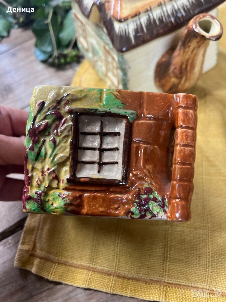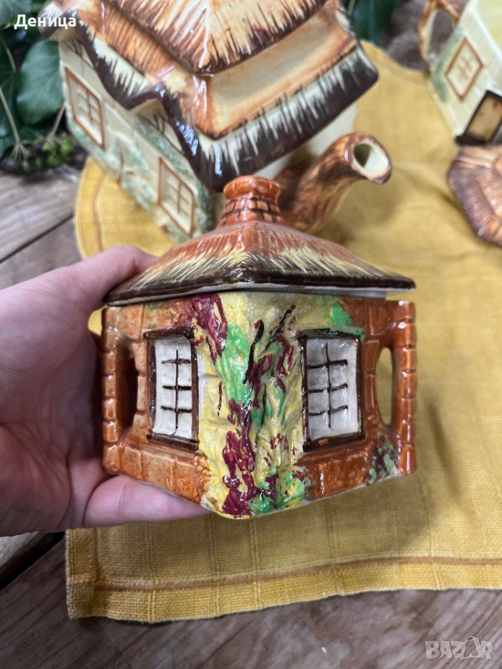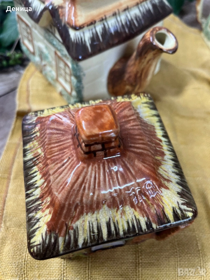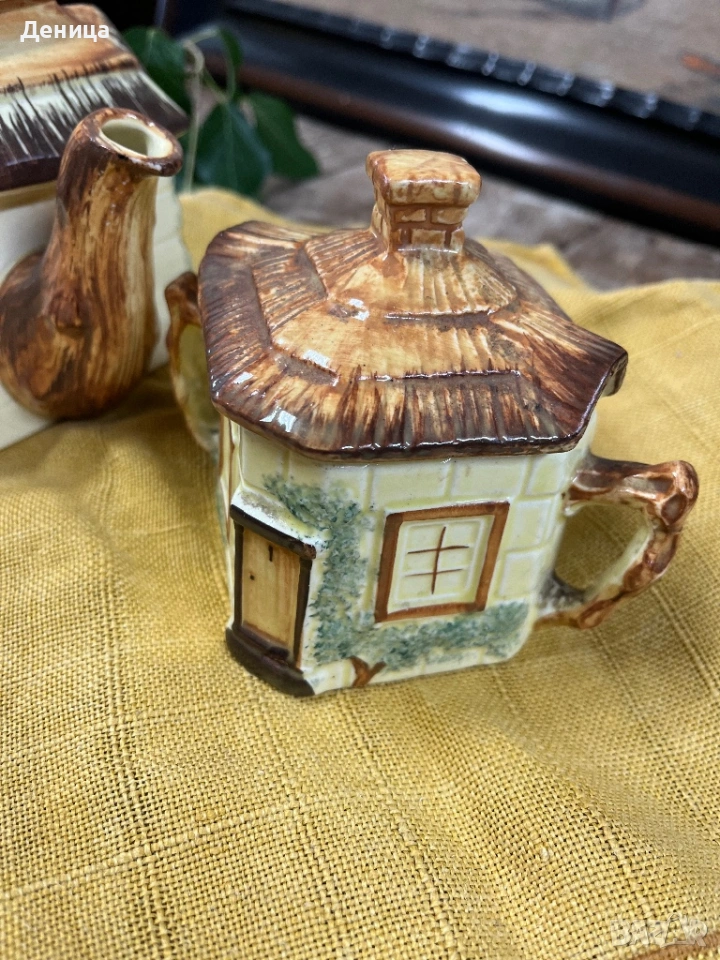 Страхотните английски къщички♥️ Чайник-23/ 15 см с чучур и дръжка Кафява захарница-10.5/8.5 см Жълт → Обява 53253297