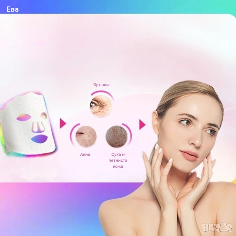 LED Маска за лице със 7 светлинни режима - Домашна фототерапия за по-чиста и спокойна кожа → Обява 53253535
