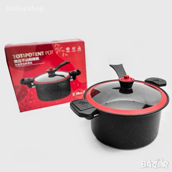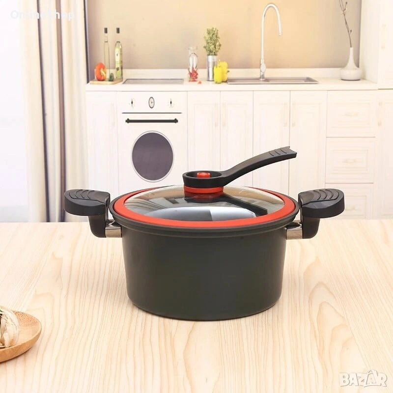 Вакуумната тенджера с незалепващо покритие е създадена за всички, които ценят бързото и здравословно готвене в домашни условия. Благодарение на вакуумната технология и предпазния клапан, ястията се приготвят по-бързо, като запазват естествения си вкус и хранителни вещества. Идеална за ежедневна употреба, тя е подходяща за приготвяне на супи, яхнии, месо и зеленчуци с минимално количество мазнина.