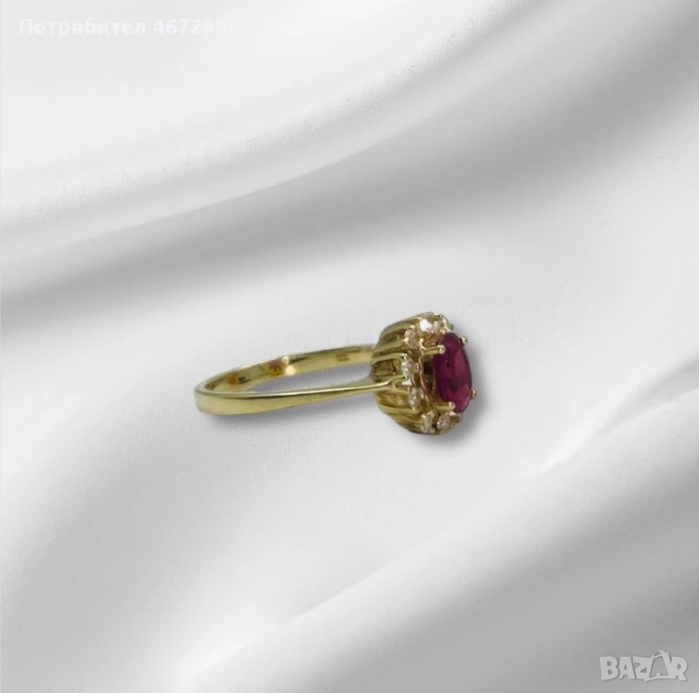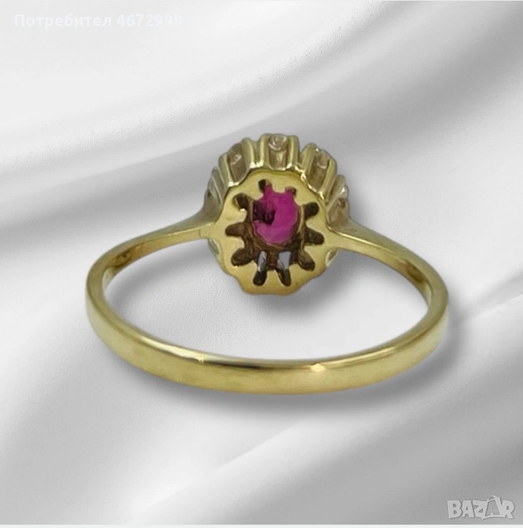 Ръчно изработен златен пръстен 14к с рубин и диаманти