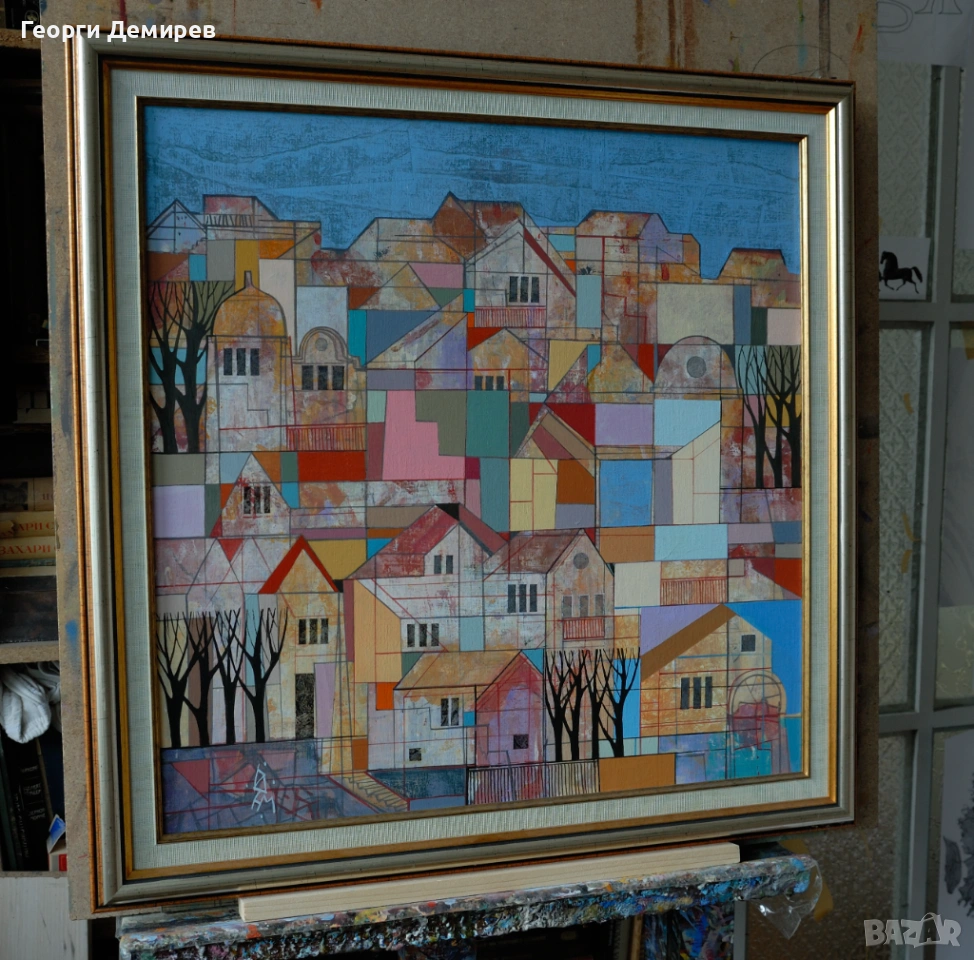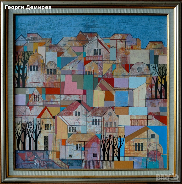 "Пейзаж" - Маслени, акрилни бои върху платно. Размер на платното - 52см Х 52см. Размер на външна рамка - 60см Х 60см.