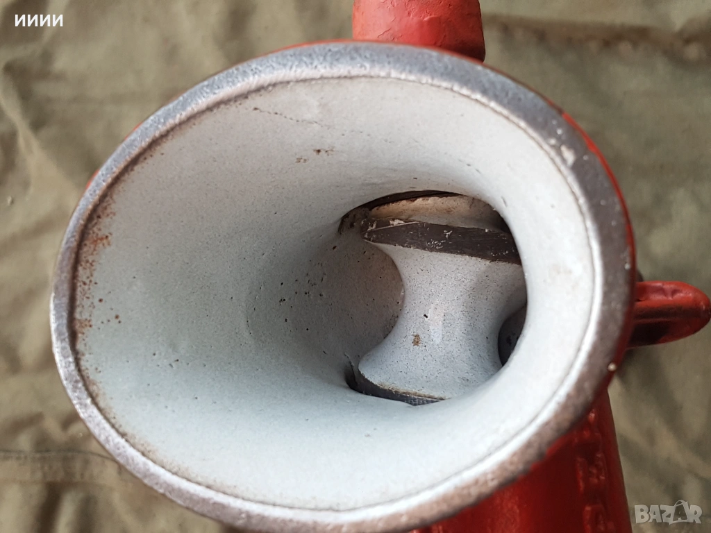 Румънско соц качествено производство, с непокътнато емайлирано покритие. С две решетки едра и ситна. Месомелачката е без забележки, здрава и годна за дълга употреба.