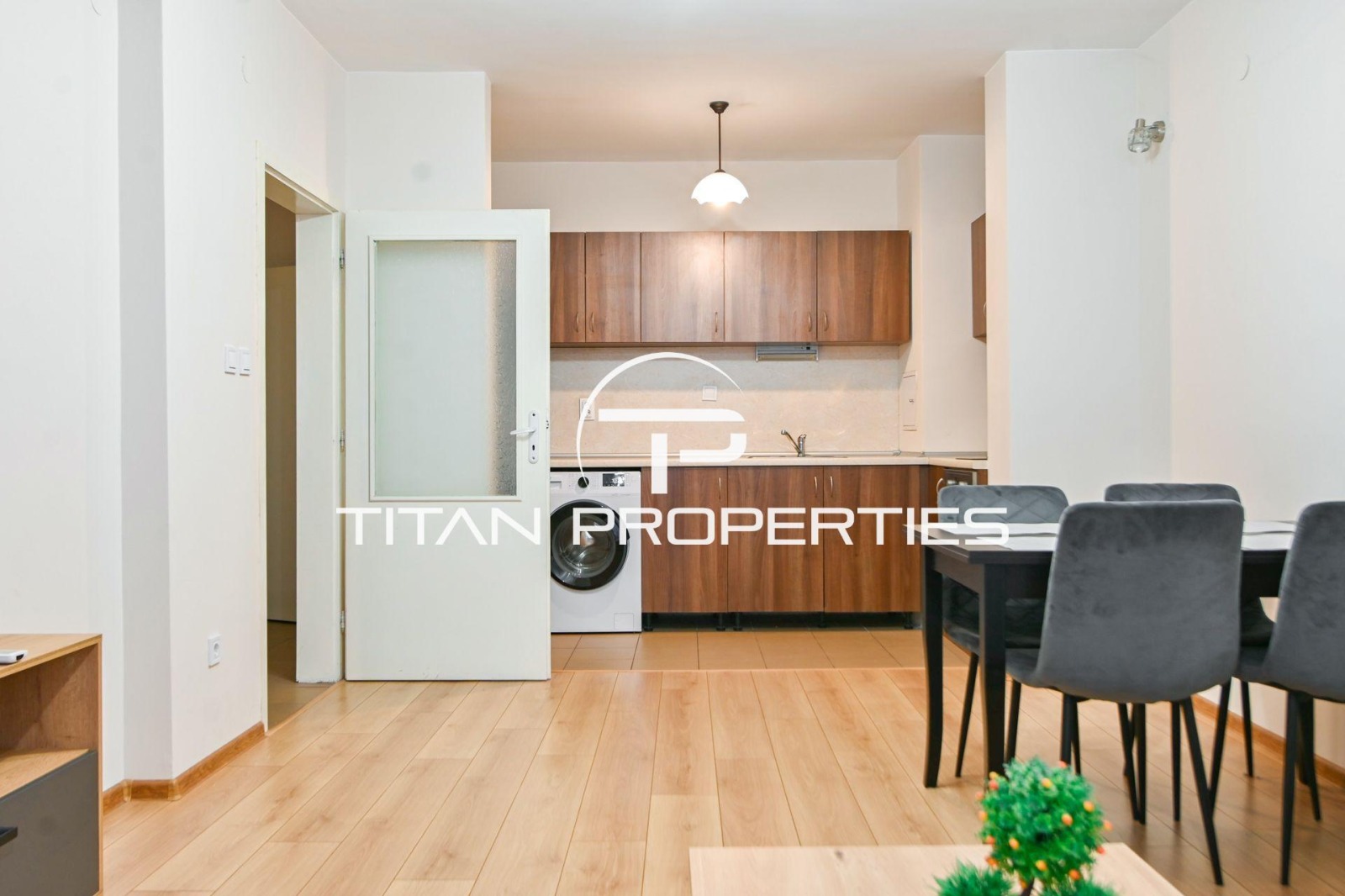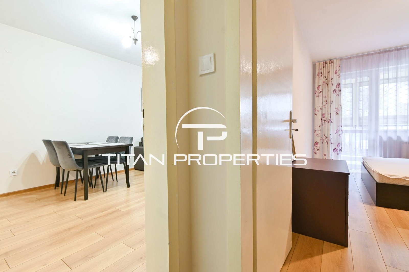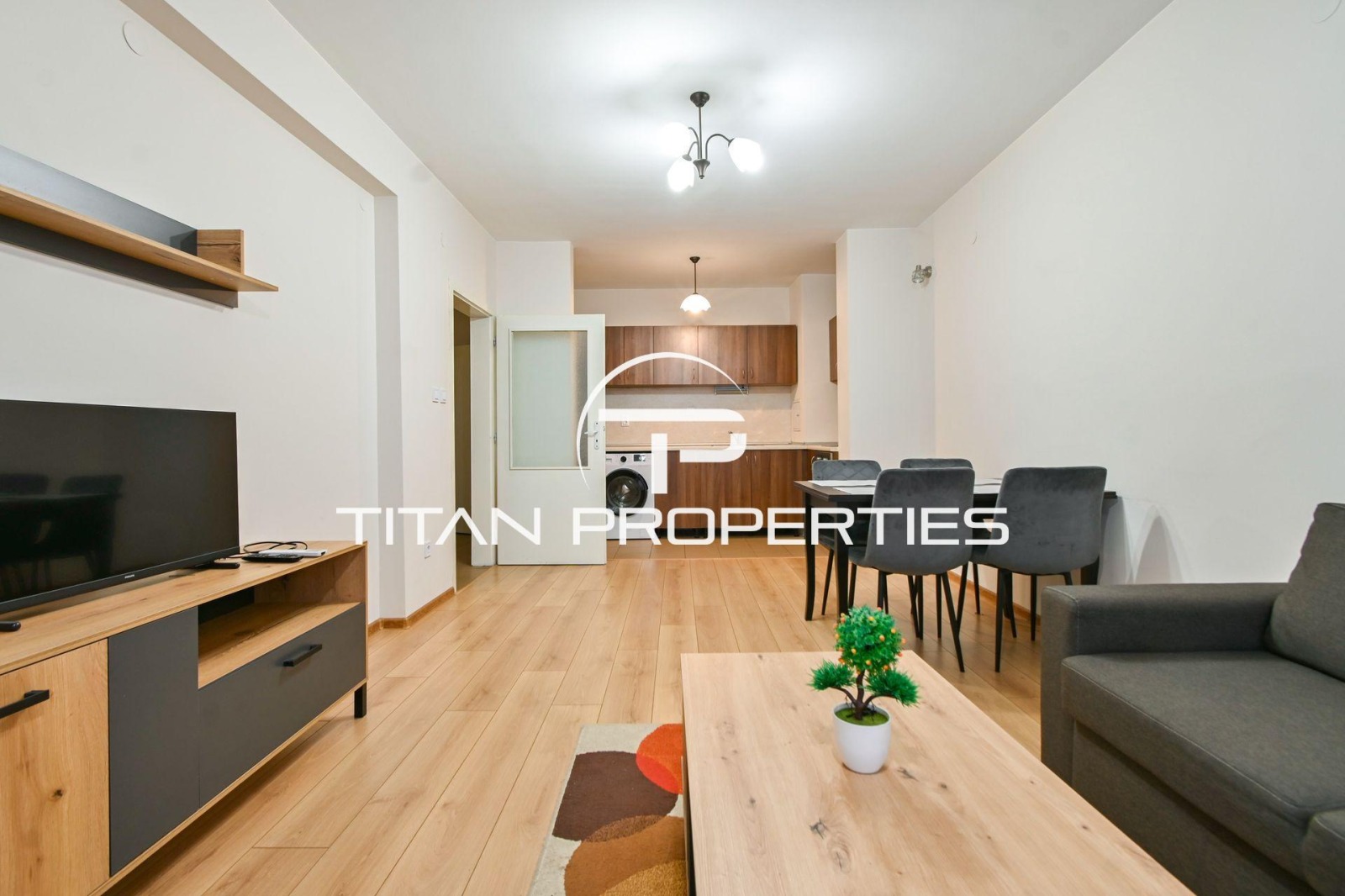 Титан Пропъртис - офис Младост с радост предлага на Вашето внимание двустаен апартамент под наем в кв. Слатина, София. Жилището с площ от 65 кв.м. се намира на 1-ви етаж в нова пететажна сграда. Източно изложение гарантира достатъчно дневна светлина. Разпределението включва коридор, хол с кухненски бокс, спалня, баня с тоалетна и тераса. Апартаментът е обзаведен и разполага с отопление на ТЕЦ, като разполага и с климатик.