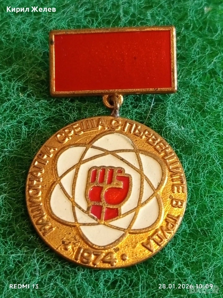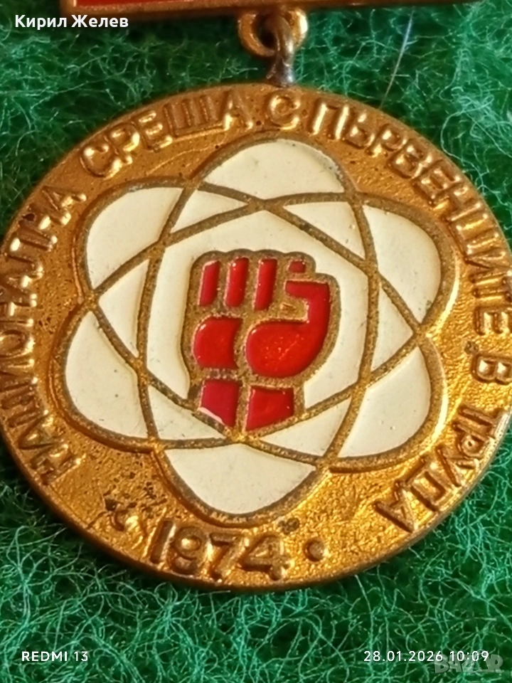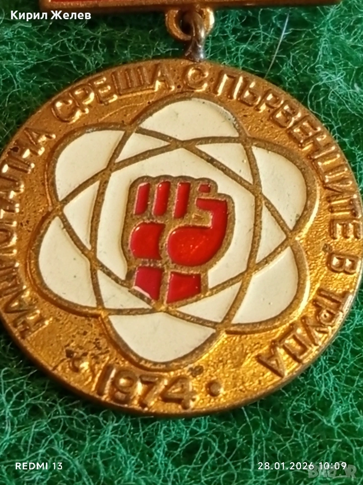 Стара емайлирана значка НАЦИОНАЛНА СРЕЩА с ПЪРВЕНЦИТЕ в ТРУДА за КОЛЕКЦИЯ 53524
