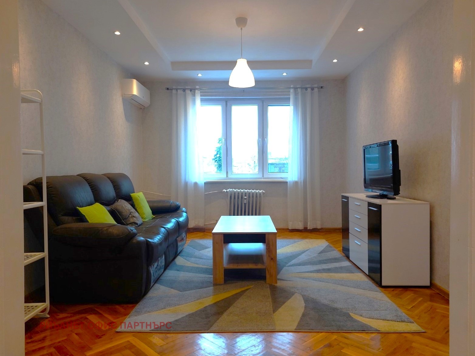 РиълНет офис Партнърс дава под наем прекрасен двустаен апартамент в сграда в тих вътрешен двор до Сан Стефано Плаза на втора линия от бул. Цар Освободител. ТОП локация до Софийския университет, БНТ, Орлов мост, Борисовата градина, стадион В. Левски, идеален център... Състои от голяма дневна с преход към кухня с балкон и мокро помещение, баня с тоалетна, просторна преходна спалня, антре. Напълно обзаведен и оборудван с всичко необходимо за вашето удобство - климатик в дневната, миялна машина, микровълнова фурна, пералня със сушилня, реголируемо осветление, кожен диван с подвижни седалки. Югоизточен, светъл и топъл апартамент с ниски сметки за отопление. Използваемо мазе 6.70 кв.м с място за складиране на извънсезонни вещи и/или спортни принадлежности.