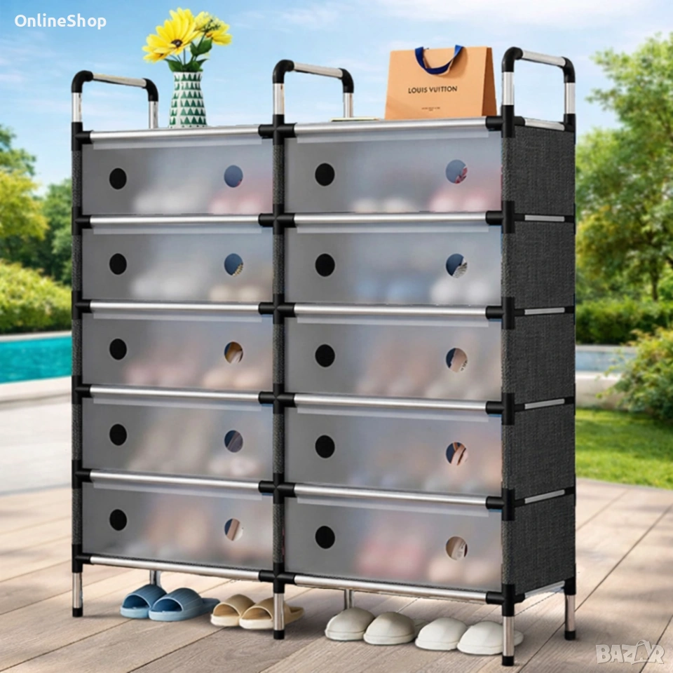 Многоетажен шкаф за обувки с прозоречни врати и голям капацитет