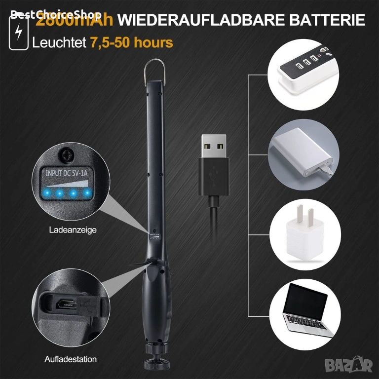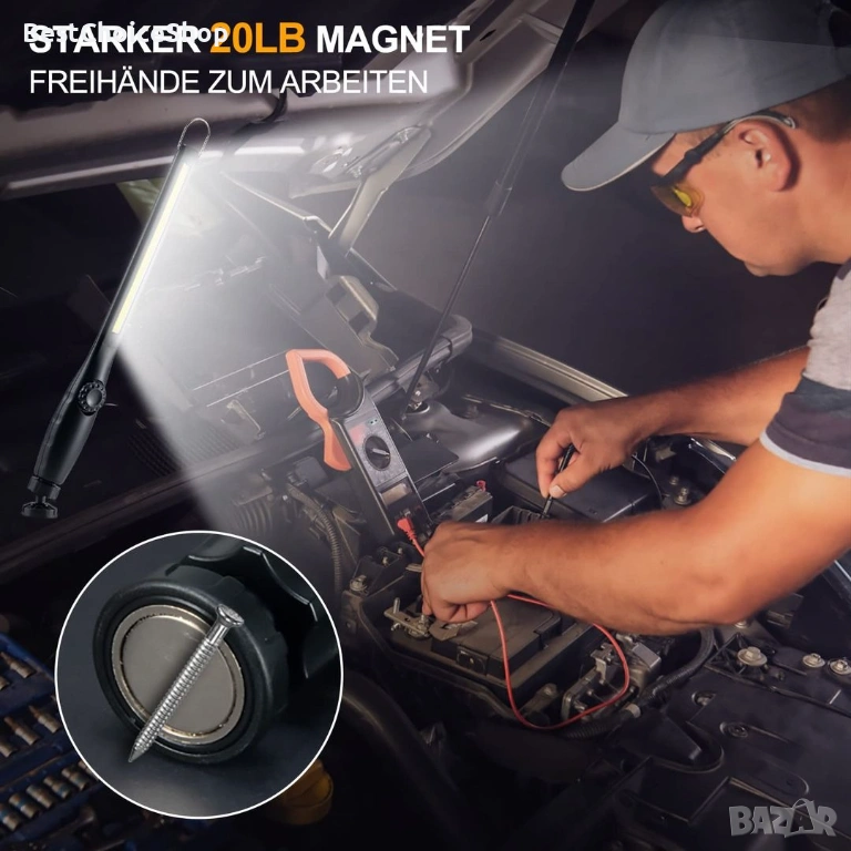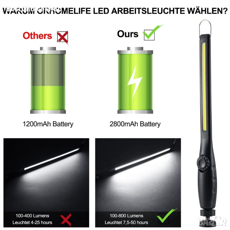 ORHOMELIFE LED работна светлина, работеща на батерии 800LM LED фенерче, ръчна лампа Лампа за работилница Инспекционни светлини с кука за окачване и магнитна основа за ремонт на автомобили, работилница, аварийно осветление