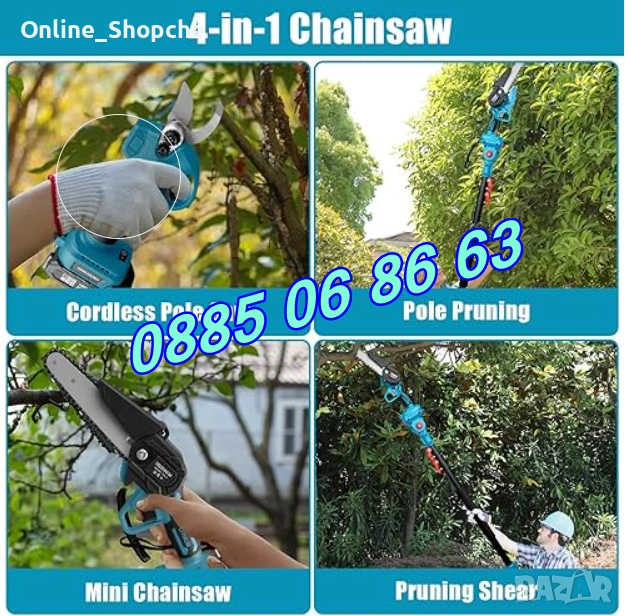 - Лесна употреба: Телескопичният прът позволява лесен достъп до високи и труднодостъпни клони.