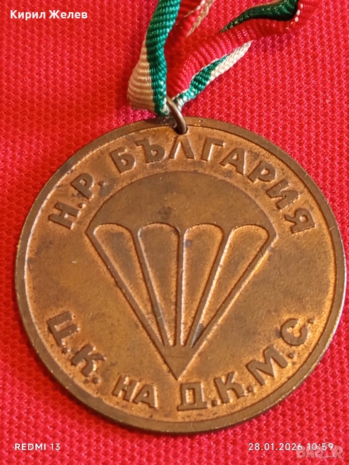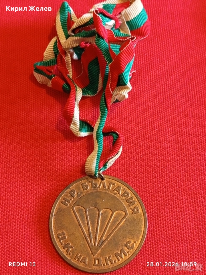 Медал За ЗАСЛУГИ в ПАРАШУТИЗМА ЦК на ДКМС НРБ за КОЛЕКЦИОНЕРИ 12345