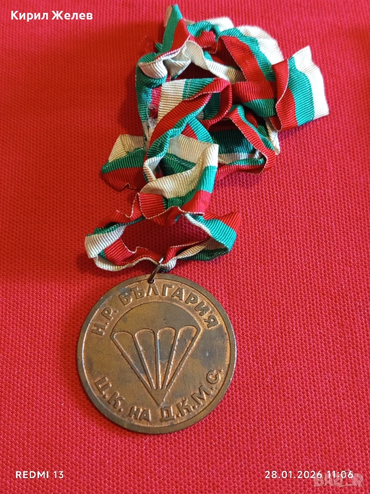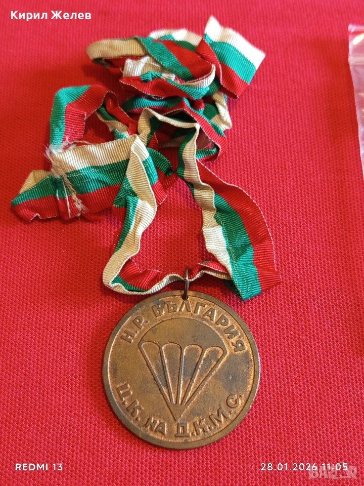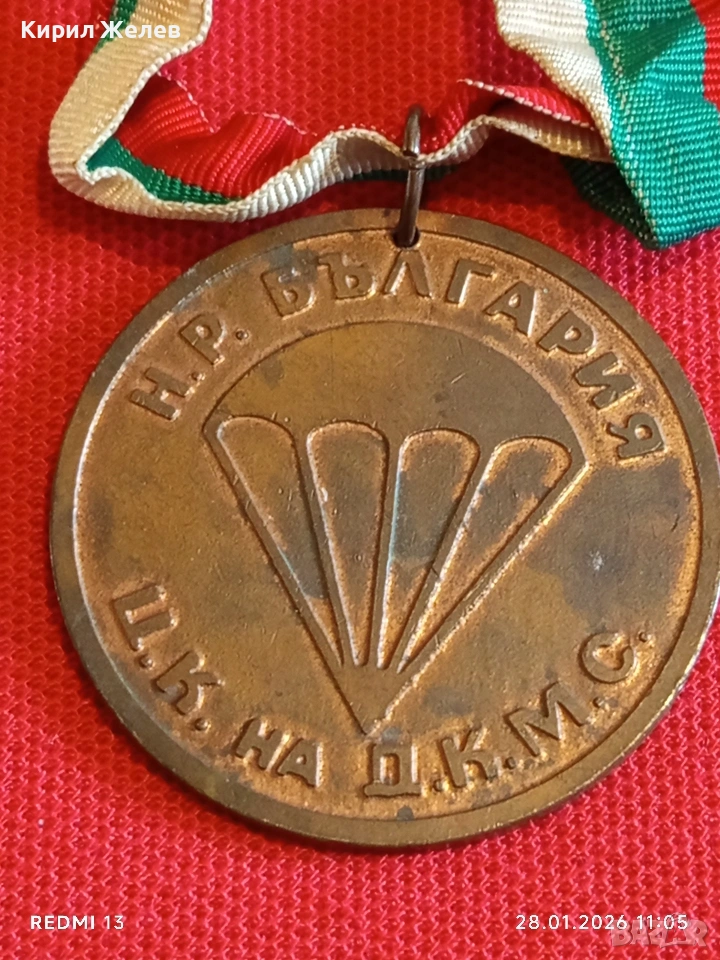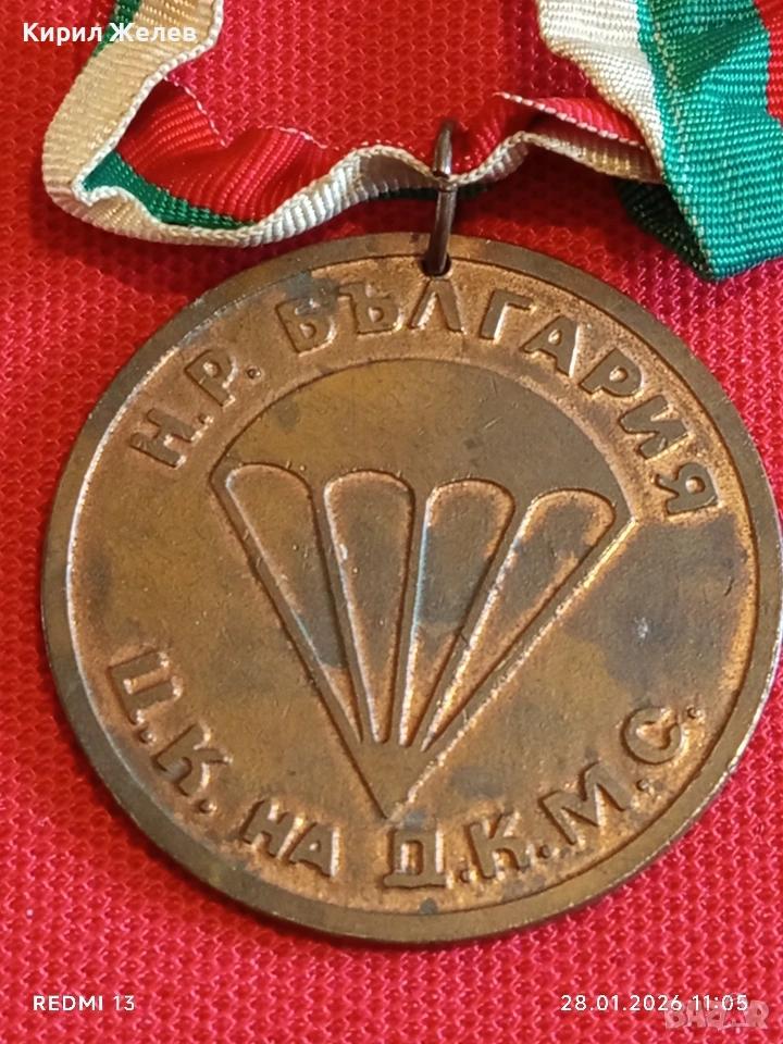 Медал За ЗАСЛУГИ в ПАРАШУТИЗМА ЦК на ДКМС НРБ рядък за КОЛЕКЦИЯ 53511