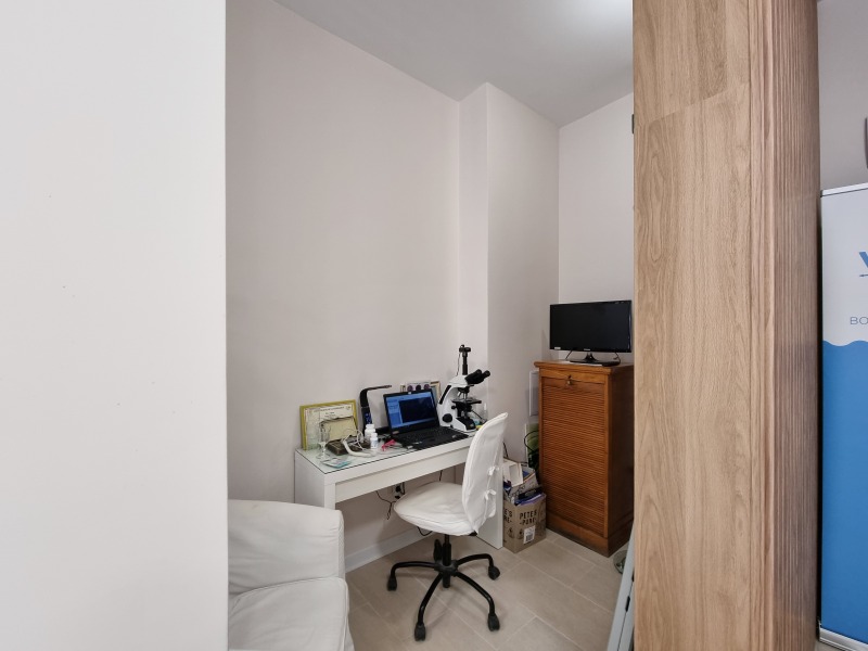 Магазинът е изключително подходящ за салон за красота, дентален център, масажно студио, офис или дори друг вид търговска дейност. На първото ниво има просторно помещение от около 30 кв.м със санитарен възел, а на долното ниво (на минус първи етаж) има още две помещения, свързани с вътрешни стълби.