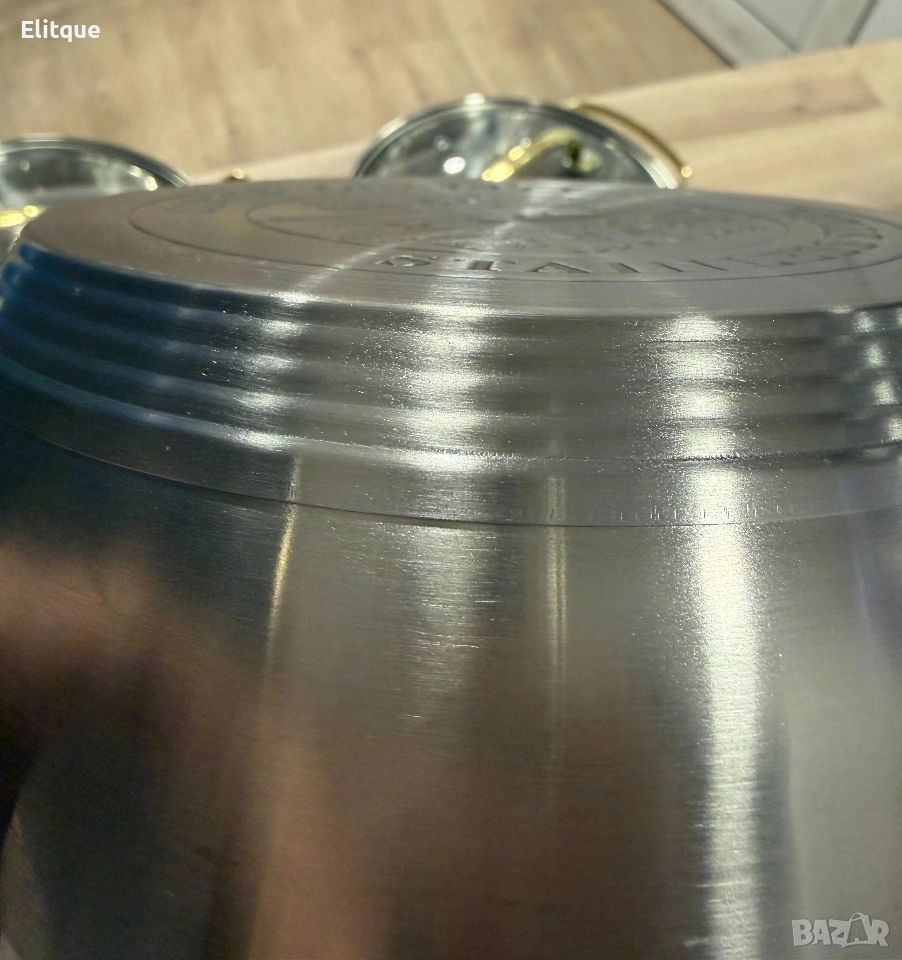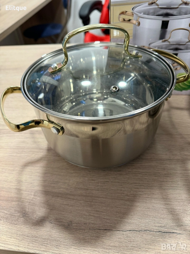 Луксозен комплект тенджери с неръждаема стомана и златисти дръжки – перфектният избор за всяка кухня