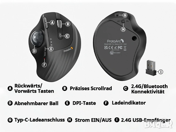#ергономичнамишка #trackball #ProtoArc #безжичнамишка #bluetoothмишка #офисаксесоари #компютърнапериферия #тихамишка #ергономия
