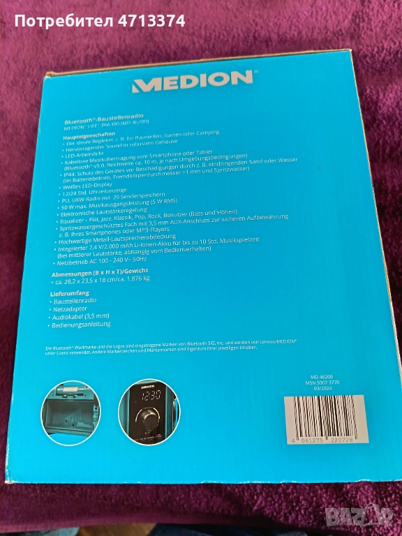 Здрав корпус с дръжка и вградено осветление на гърба. Отзад има защитена вратичка за прибиране и защита на телефон или всякакъв вид музикален носител. Единствен недостатък е упътването,то е само на немски.Не е сложно за настройка и обслужване,защото всичко е обяснено и с снимки в опътването.
