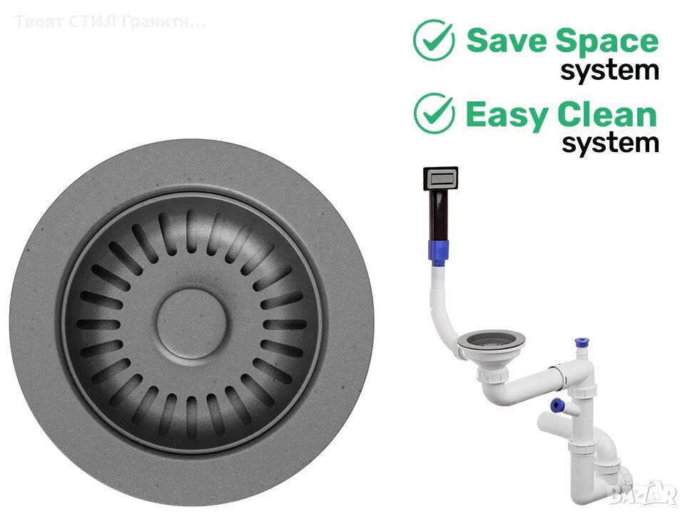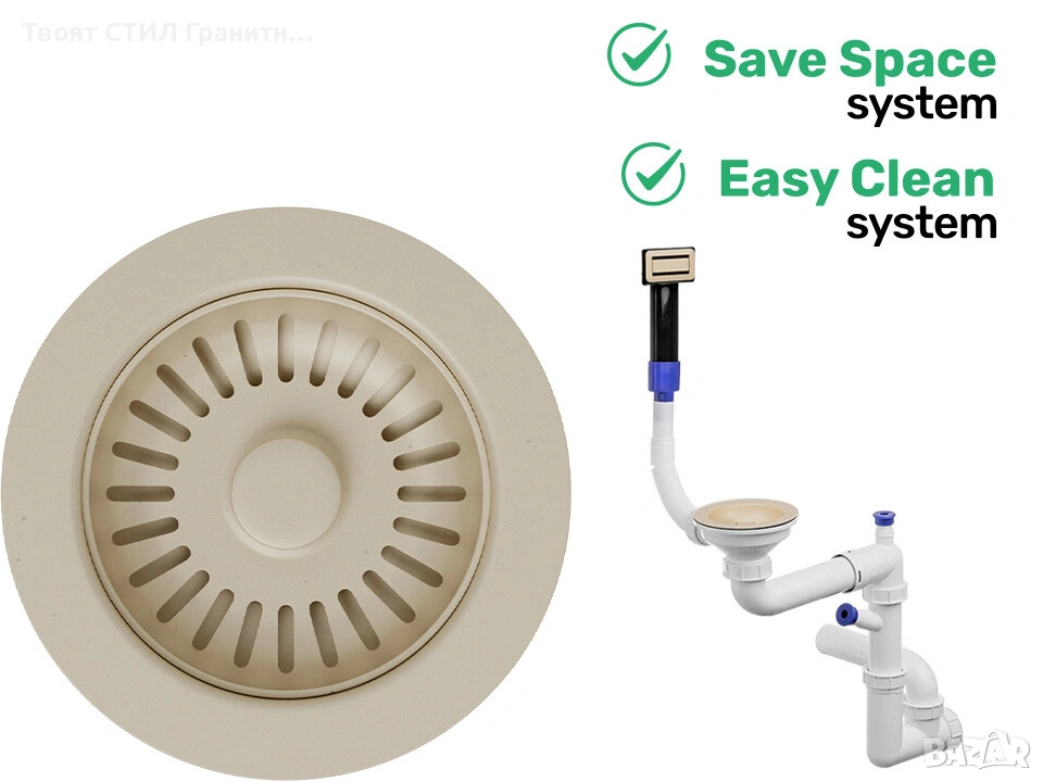Телесни цветни аксесоари ТОЧНИЯ нюанс Смесител+Сифон+Дозатор Сив Бежов К-т