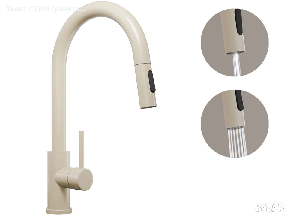 ✔️ Бежов смесител с изтеглящ се чучур – 2 режима